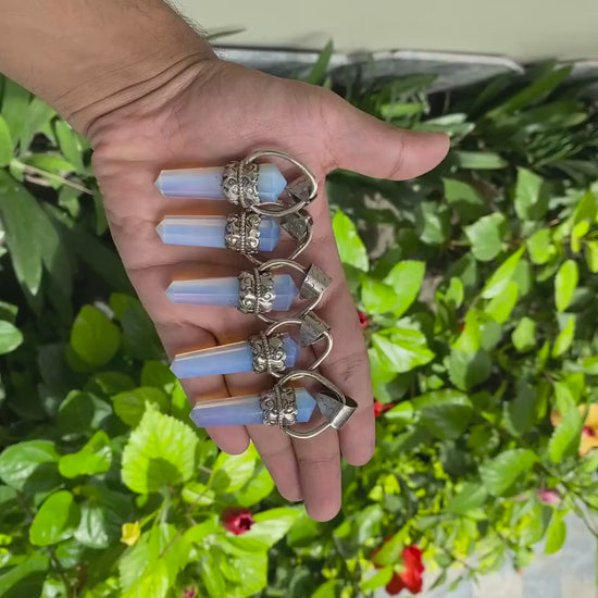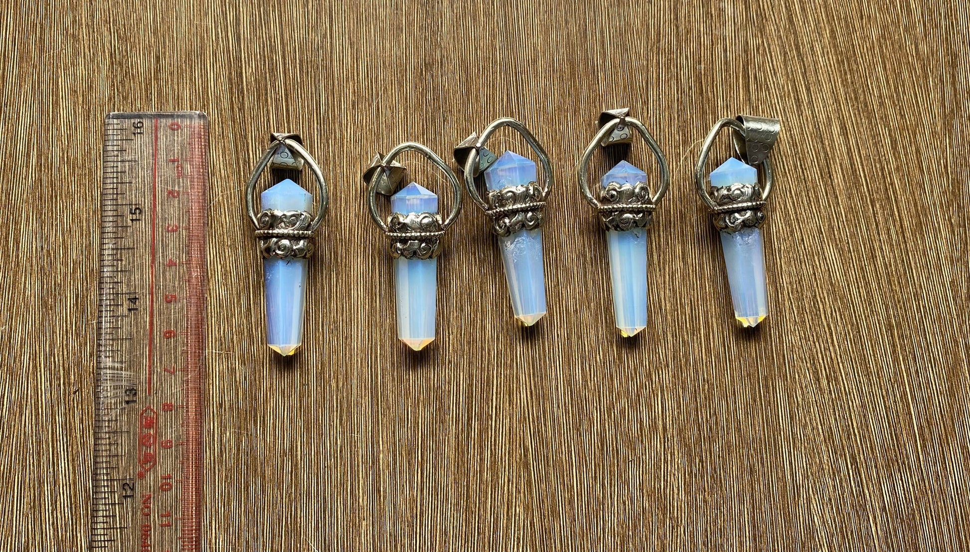 It features a pointed, unisex design with detailed floral accents. This handmade natural Opalite pendant resonates with both bohemian and healing energy. You will definitely feel the positive radiance it exudes, plus the advantage of an exceptionally unique aesthetic appeal that is great for styling...