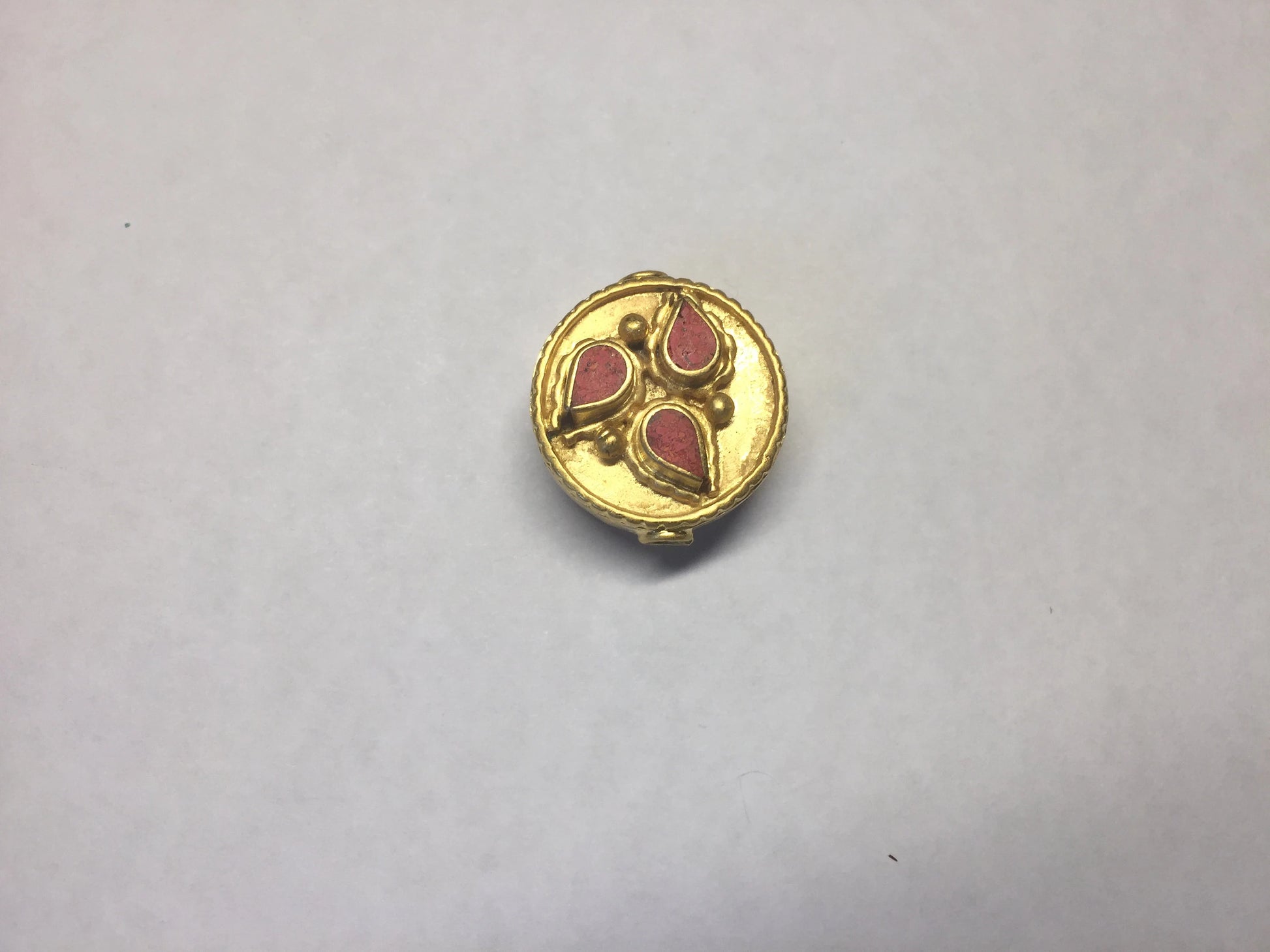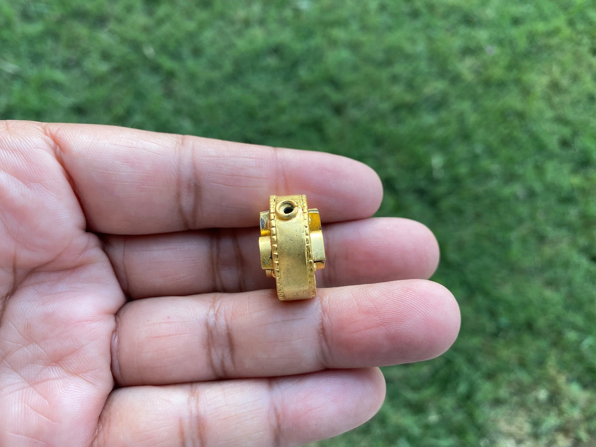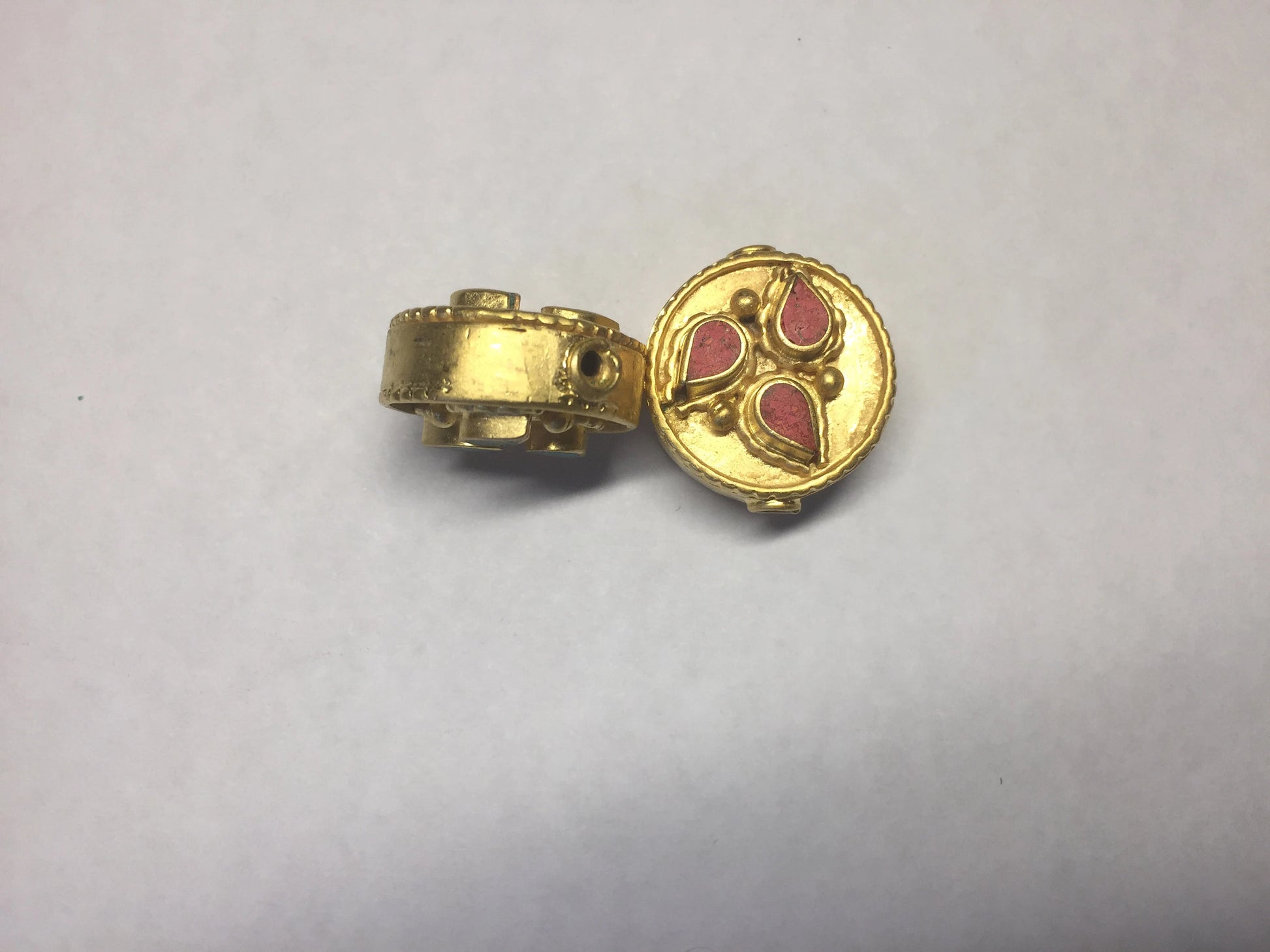 These beautiful high quality 18K Matte Gold Overlay over brass with anti-tarnish finish so that It will not tarnish. These Tibetan beads were handcrafted in Nepal. Hand-carved beads made with Coral inlaid, both-side same designs. These Beads are sure to make an impact on your Jewelry project. These beads would be a great addition to your necklace or bracelet project. These beads would look great strung on beaded necklace or Mala.