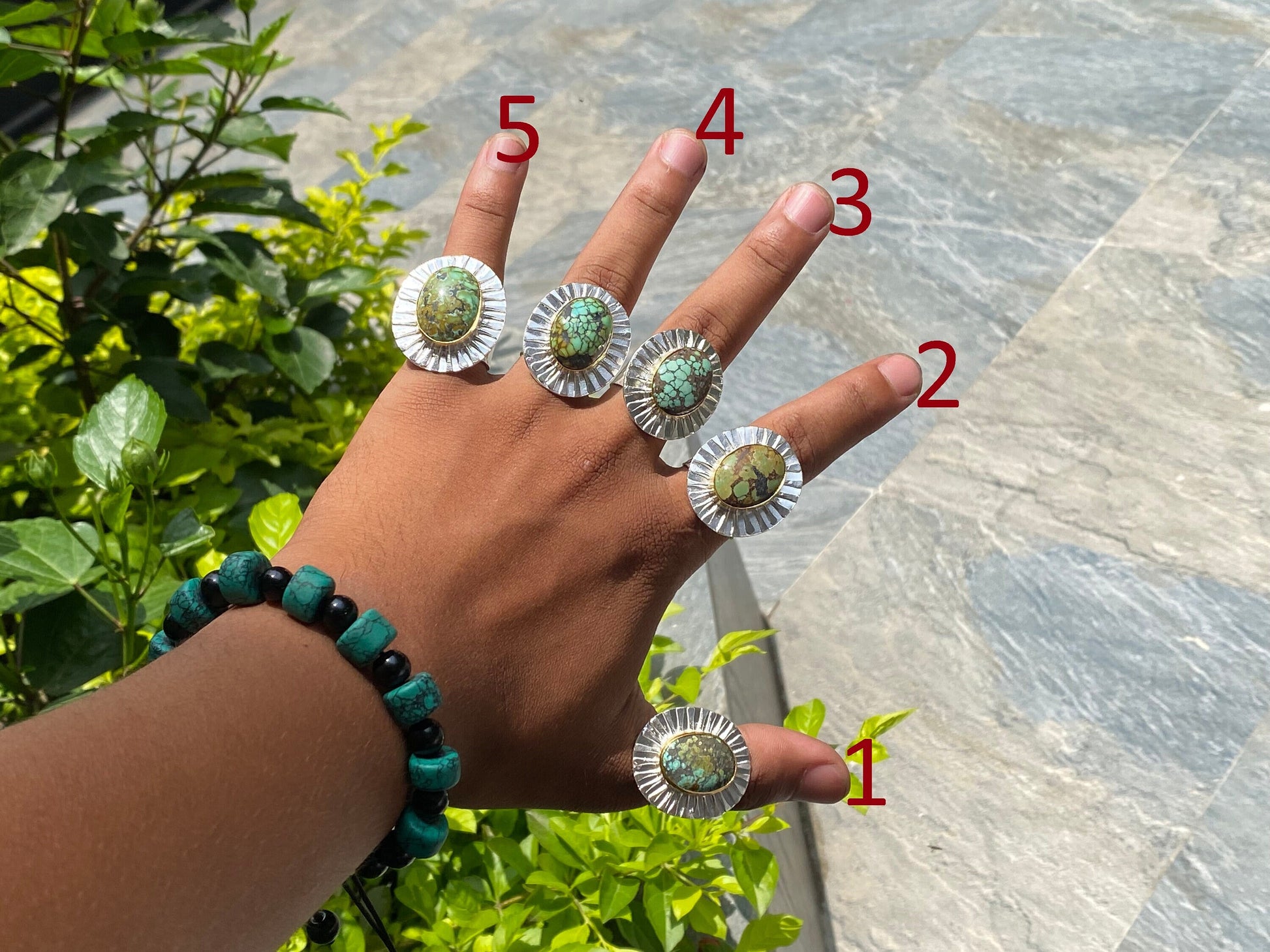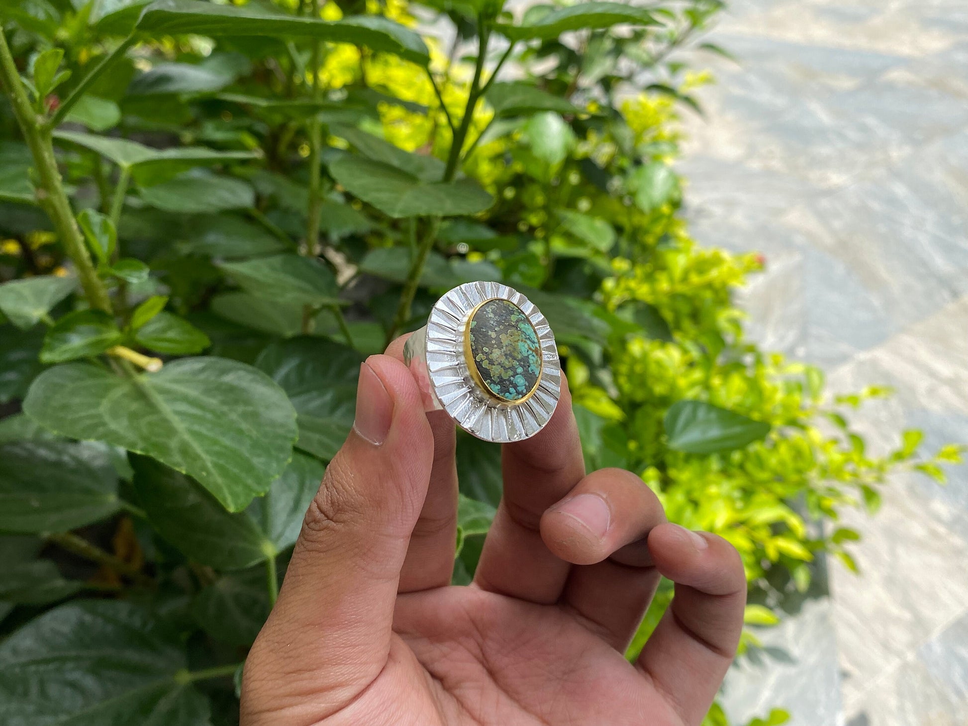 Handmade Two Tone Ring - Perfect Daily Wear & Gift Idea, Aesthetic Adjustable Ring, Healing Turquoise for Peace, Natural Gemstone Ring.