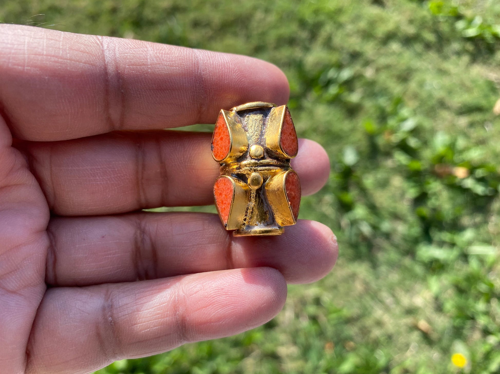 These beautiful high quality 18K Matte Gold Overlay over brass with anti-tarnish finish so that It will not tarnish. These Tibetan beads were handcrafted in Nepal. Hand-carved beads made with Turquoise, Coral, or Lapis inlay, both-side same designs. These Beads are sure to make an impact on your jewelry project. These beads would be a great addition to your necklace or bracelet project. These beads would look great strung on beaded necklace or Mala.
