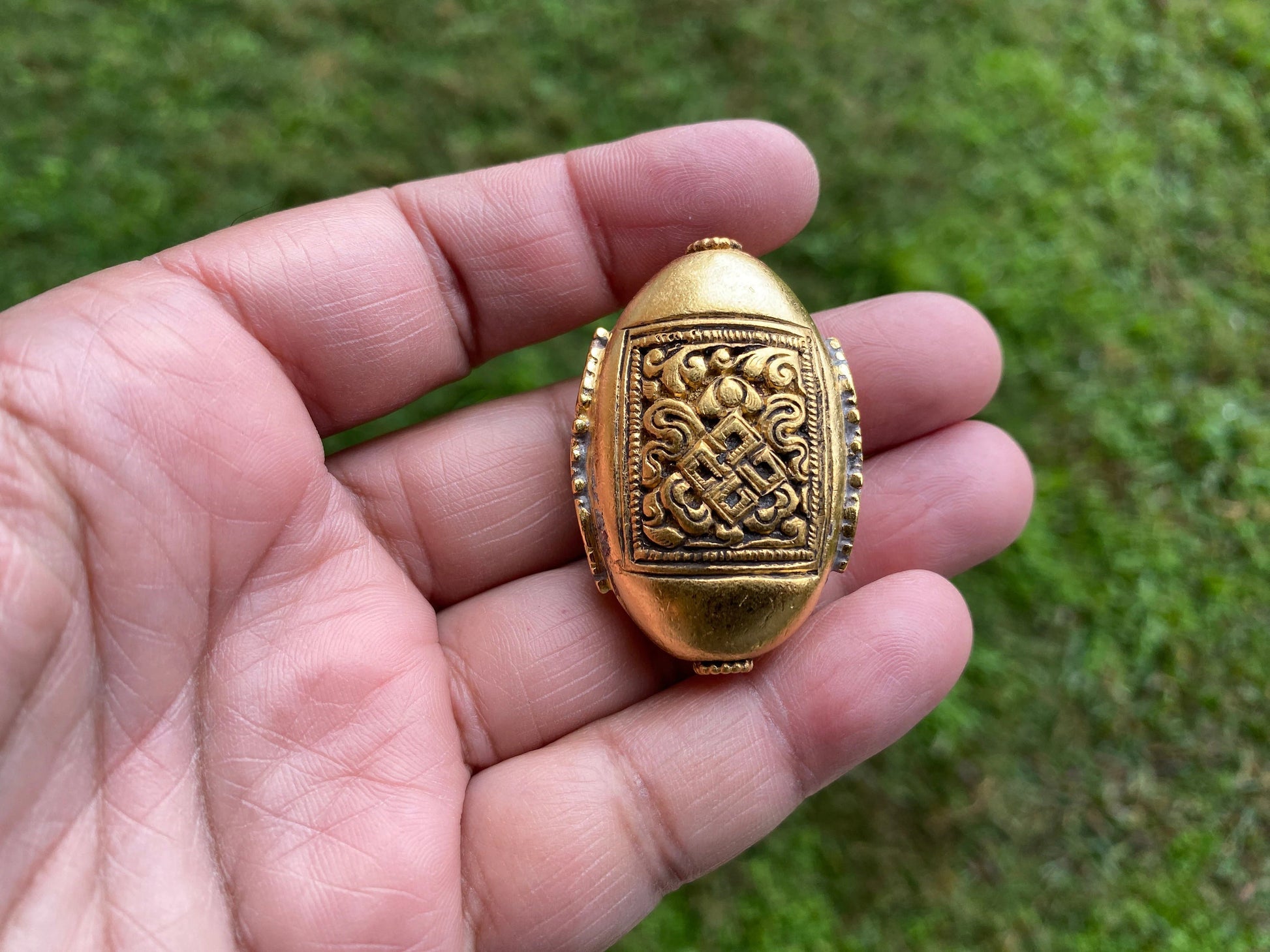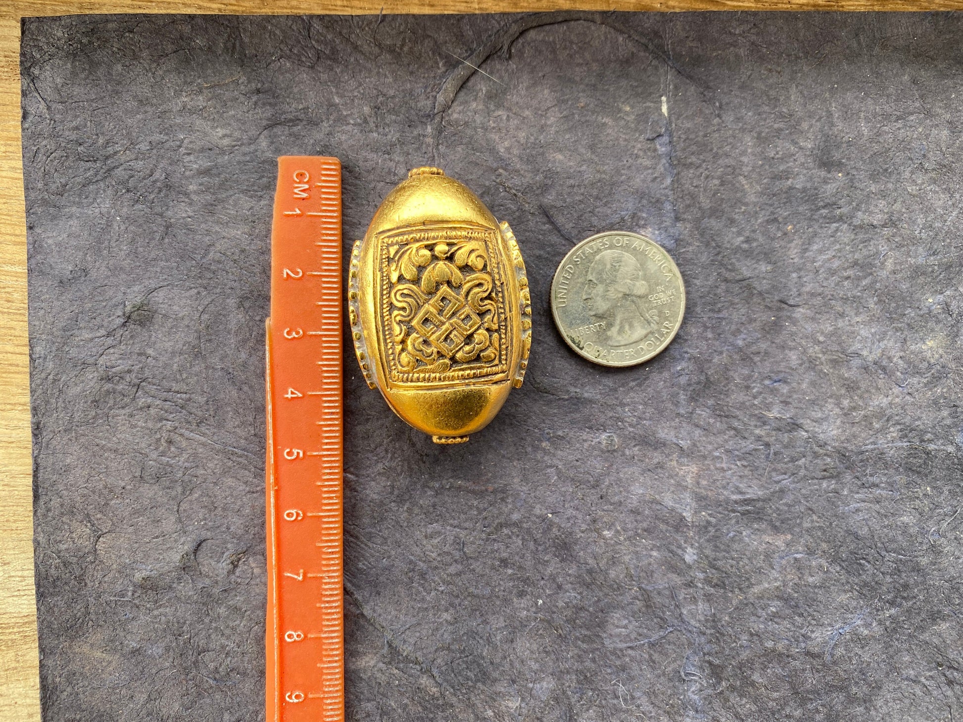 These beautiful high quality 18K Brushed Gold Overlay over brass with anti-tarnish finish. These Tibetan beads were handcrafted in Nepal. Hand-carved beads made with Coral & Turquoise inlaid, both-side same designs. These Beads are sure to make an impact on your jewelry project. These beads would be a great addition to your necklace or bracelet project. These beads would look great strung on beaded necklace or Mala.