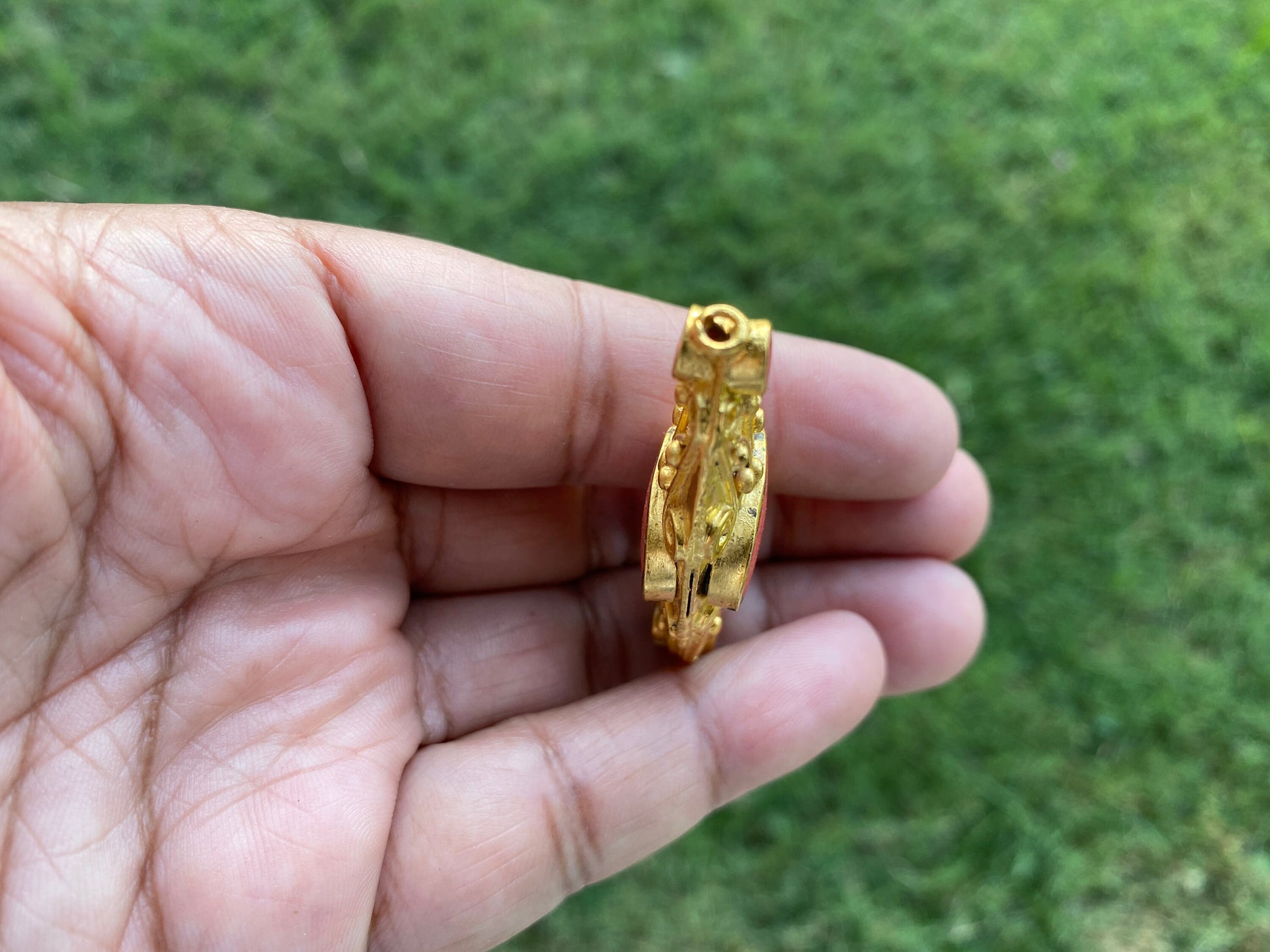 These beautiful high quality 18K Matte Gold Overlay over brass with anti-tarnish finish so that It will not tarnish. These Tibetan beads were handcrafted in Nepal. Hand-carved beads made with Coral inlaid. These Beads are sure to make an impact on your jewelry project. These beads would be a great addition to your necklace or bracelet project. These beads would look great strung on beaded necklace or Mala.