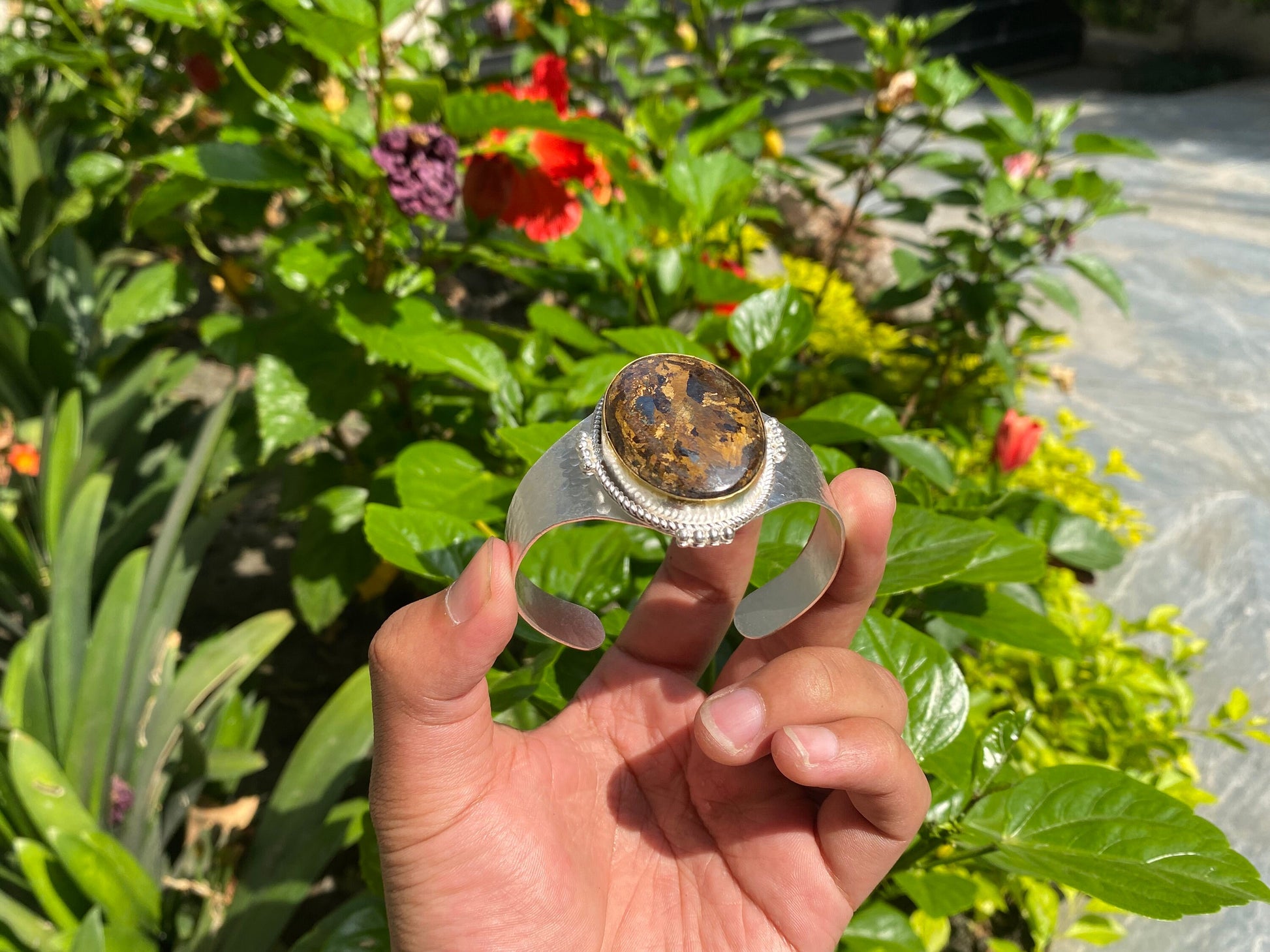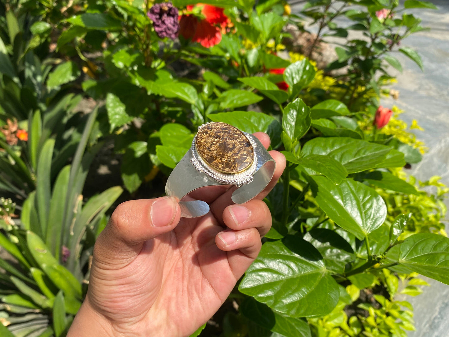 Jasper Stone Bracelet is a unique two-tone, unisex design with an adjustable fit that is ideal for everyday wear. This beneficial bracelet is handcrafted in Nepal and has a hammered texture, which adds to its earthy beauty. Embrace stability and protection with this artisanal piece that combines traditional workmanship with modern wellness advantages.
