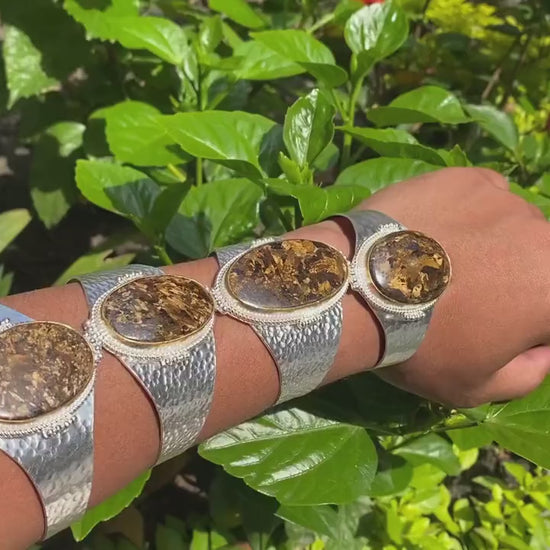 Jasper Stone Bracelet is a unique two-tone, unisex design with an adjustable fit that is ideal for everyday wear. This beneficial bracelet is handcrafted in Nepal and has a hammered texture, which adds to its earthy beauty. Embrace stability and protection with this artisanal piece...