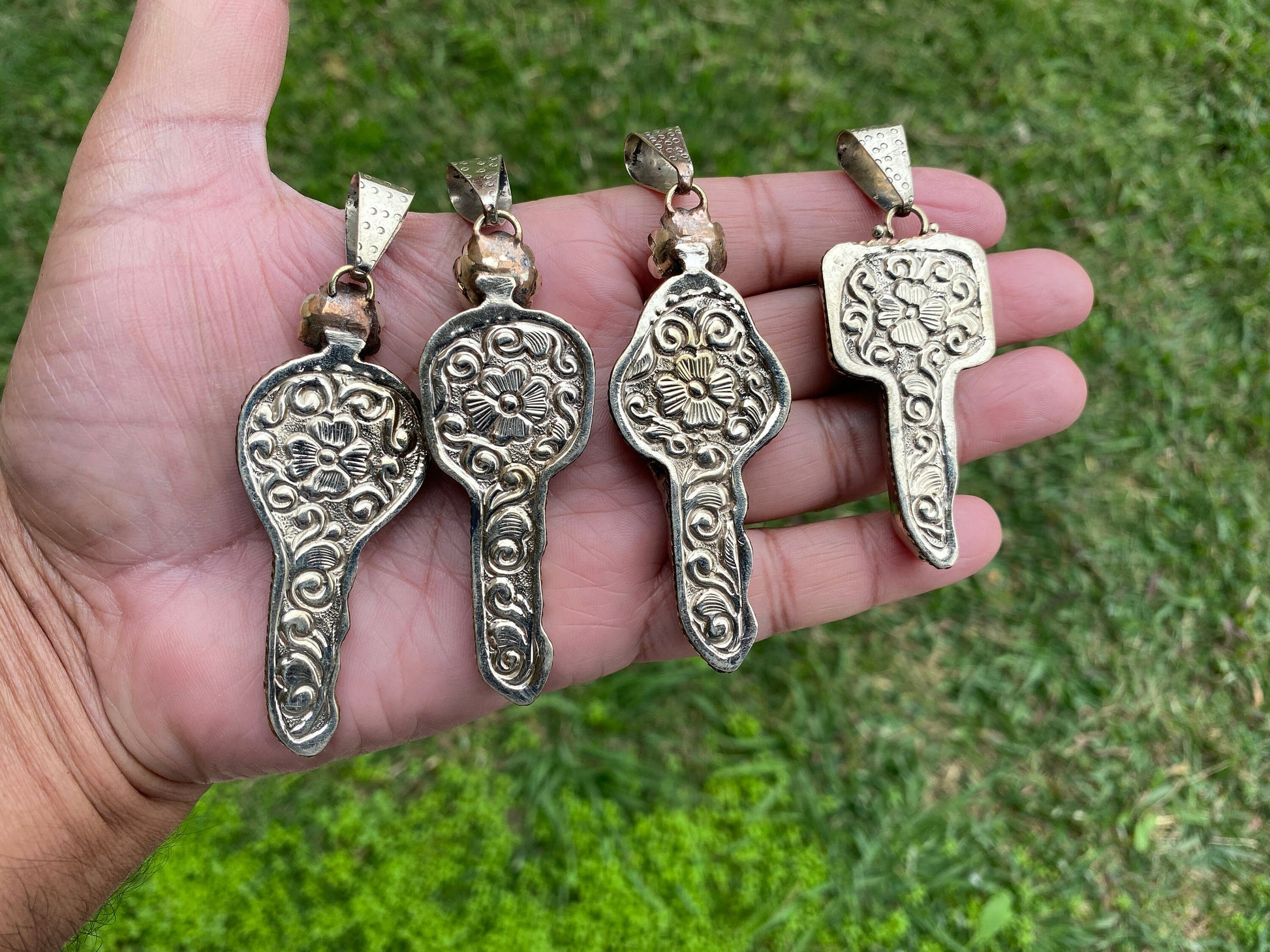The pendant has a beautiful carving design in the back and the large hanging hole of 9 mm allows you to add thicker threads and leather. These Nepali pendants have a beauty and magic to them that is unmatched as they are handmade in Kathmandu, Nepal and are one of a kind. With the nature of them being handmade, each product is unique in its own right and no two products are the same.