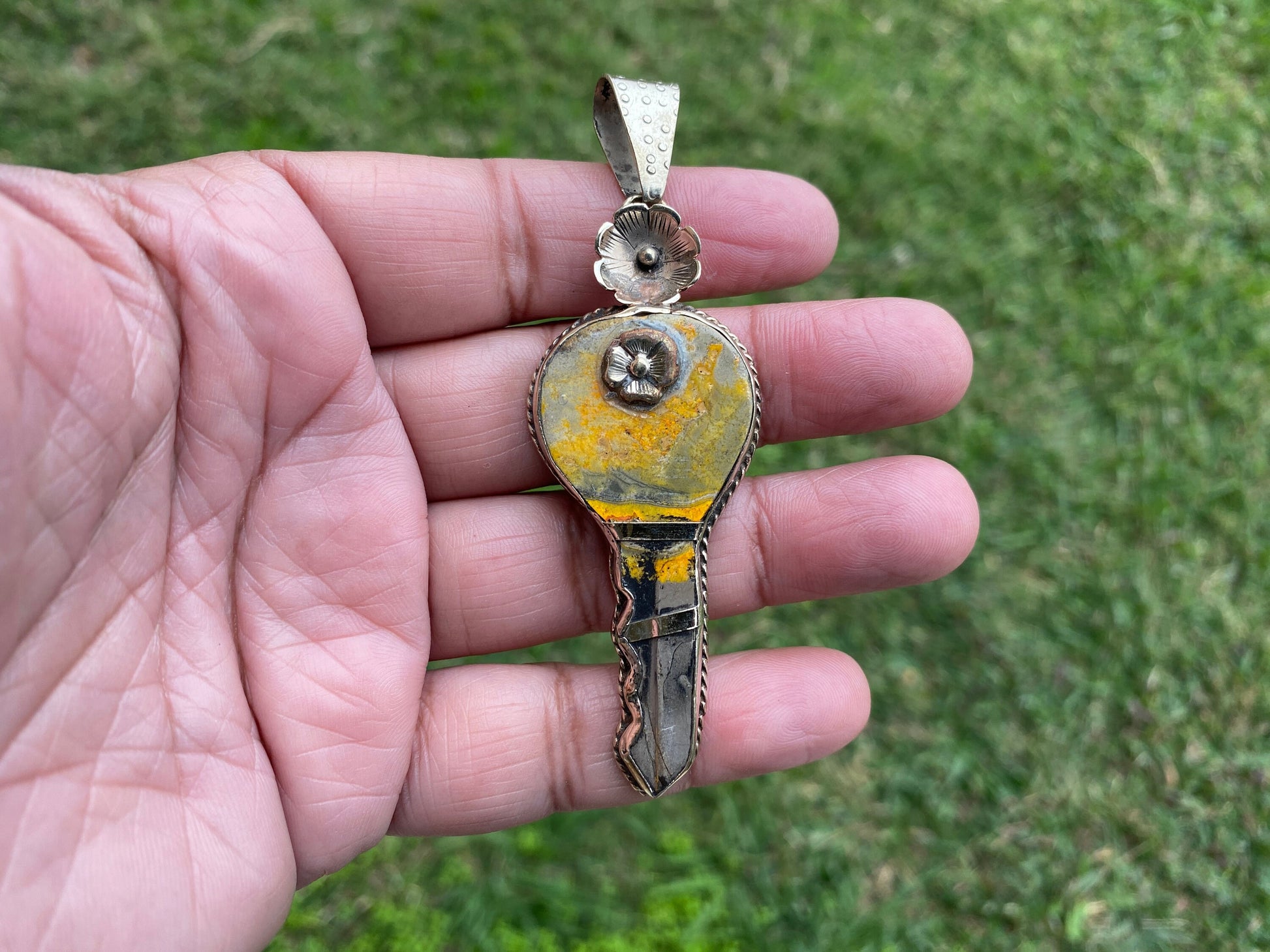 Beautiful handcrafted Bumble bee Jasper Key Pendant made with Tibetan Silver. These pendants are sure to make an impact on your jewelry project. These pendant would be a great addition to your necklace project and would looks great strung on beaded necklace , chain or Malas.