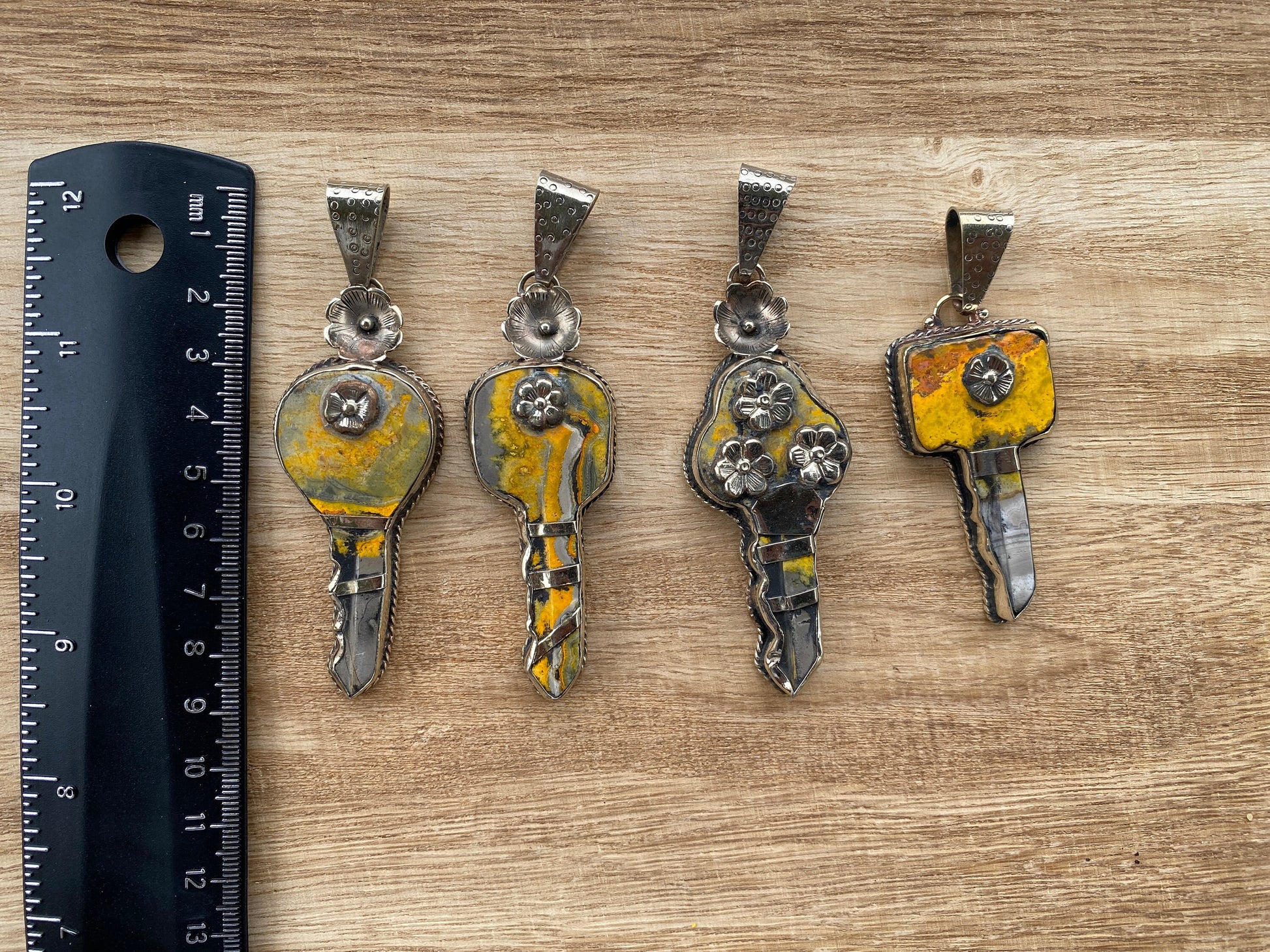 This listing is for 1 piece.At wholesale price!!! Beautiful handcrafted Bumble bee Jasper Key Pendant made with Tibetan Silver. These pendants are sure to make an impact on your jewelry project. These pendant would be a great addition to your necklace project and would looks...