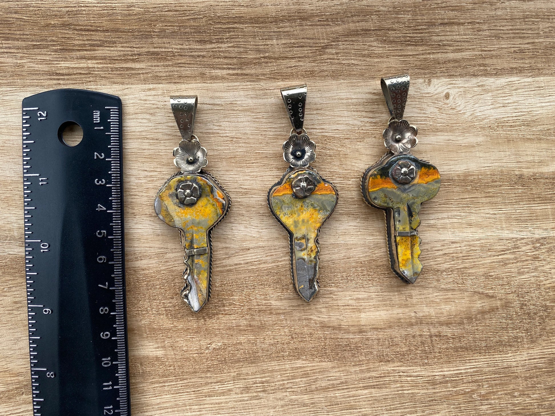 Key to Nature's Beauty Bumblebee Jasper Tibetan Silver Pendant, Handmade Key-Shaped Jewelry, Artistic Key Pendant, Boho Style Jasper Pendant