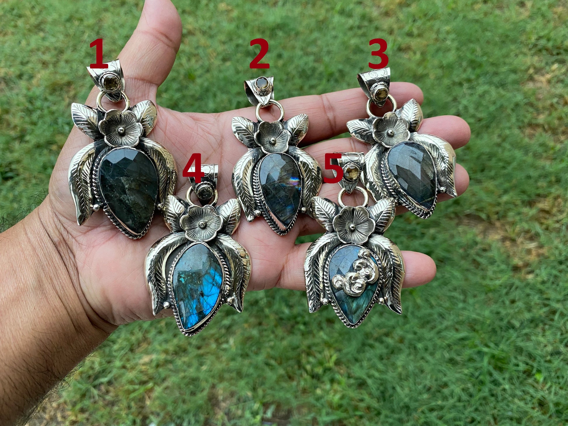 Labradorite Natural Stone Tibetan Silver Pendant with Citrine Gemstone, Healing Crystal, Energy Pendant, Birthday Gift, Birthstone Jewelry