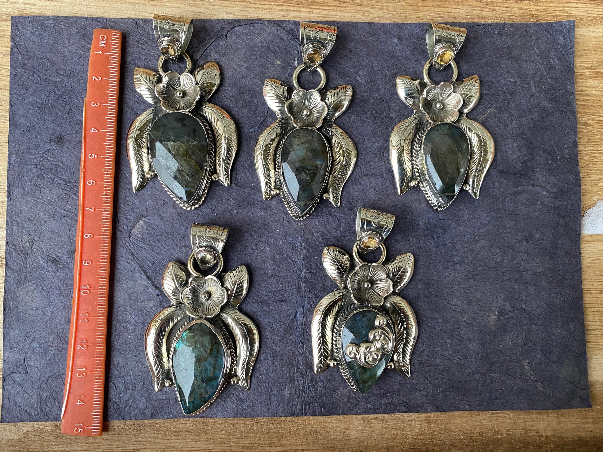 This listing is for 1 piece.At wholesale price!!! This Gorgeous pendant is hand-carved with a remarkable detail. This Tibetan designs pendant is handmade in Nepal and adorned by a beautiful pendant. Perfectly bohemian in style, these tribal beauties come from the Himalayas.Labradorite Pendant Made with...