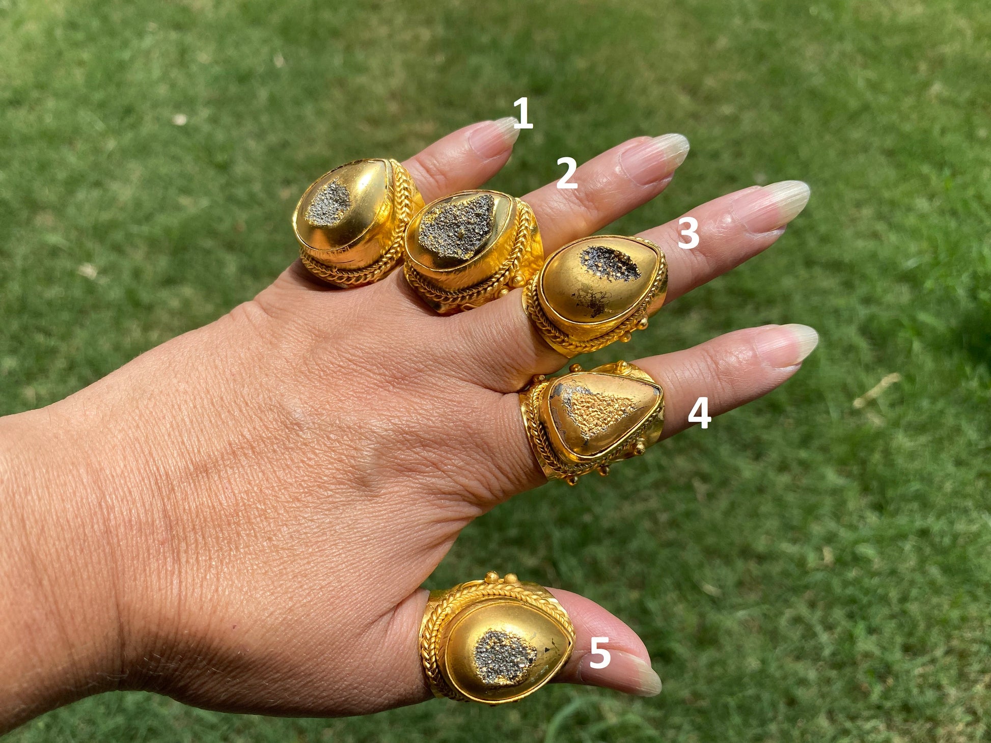 Large Adjustable Statement Druzy Ring,High Quality 18K Brushed Gold Overlay, Designer Cocktail Ring,Women Ring, Wide Band Ring,Gift for Wife