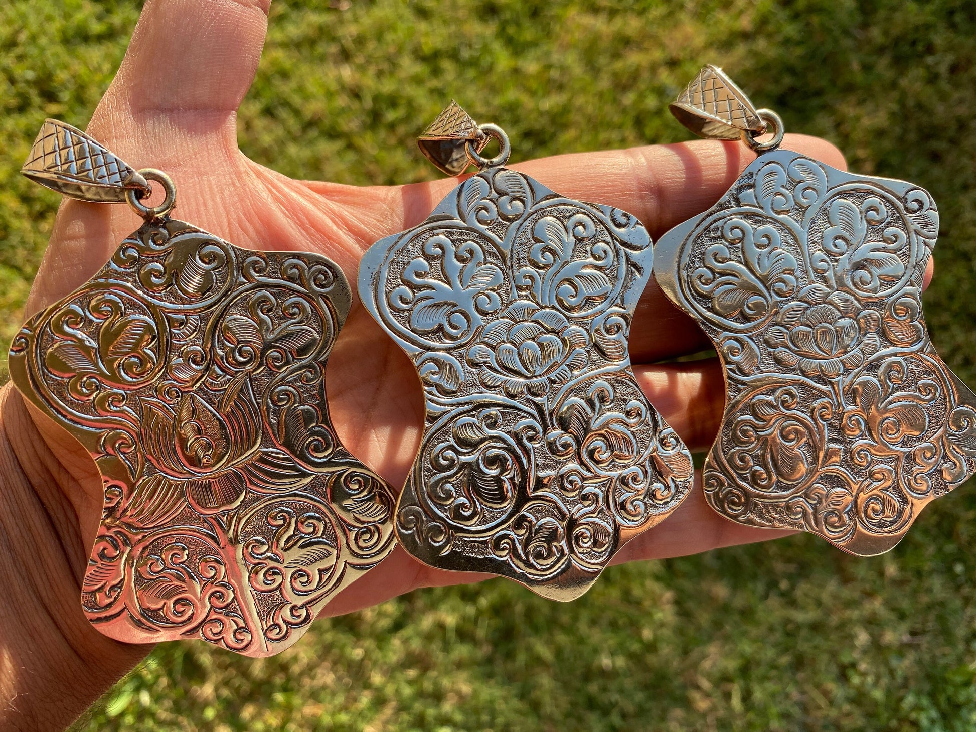 Measurement: approximately Length 105 mm (measuring from bail to bottom), width 60 mm from the widest side, bail size: 10 mm and weighs about 41.80 gm.