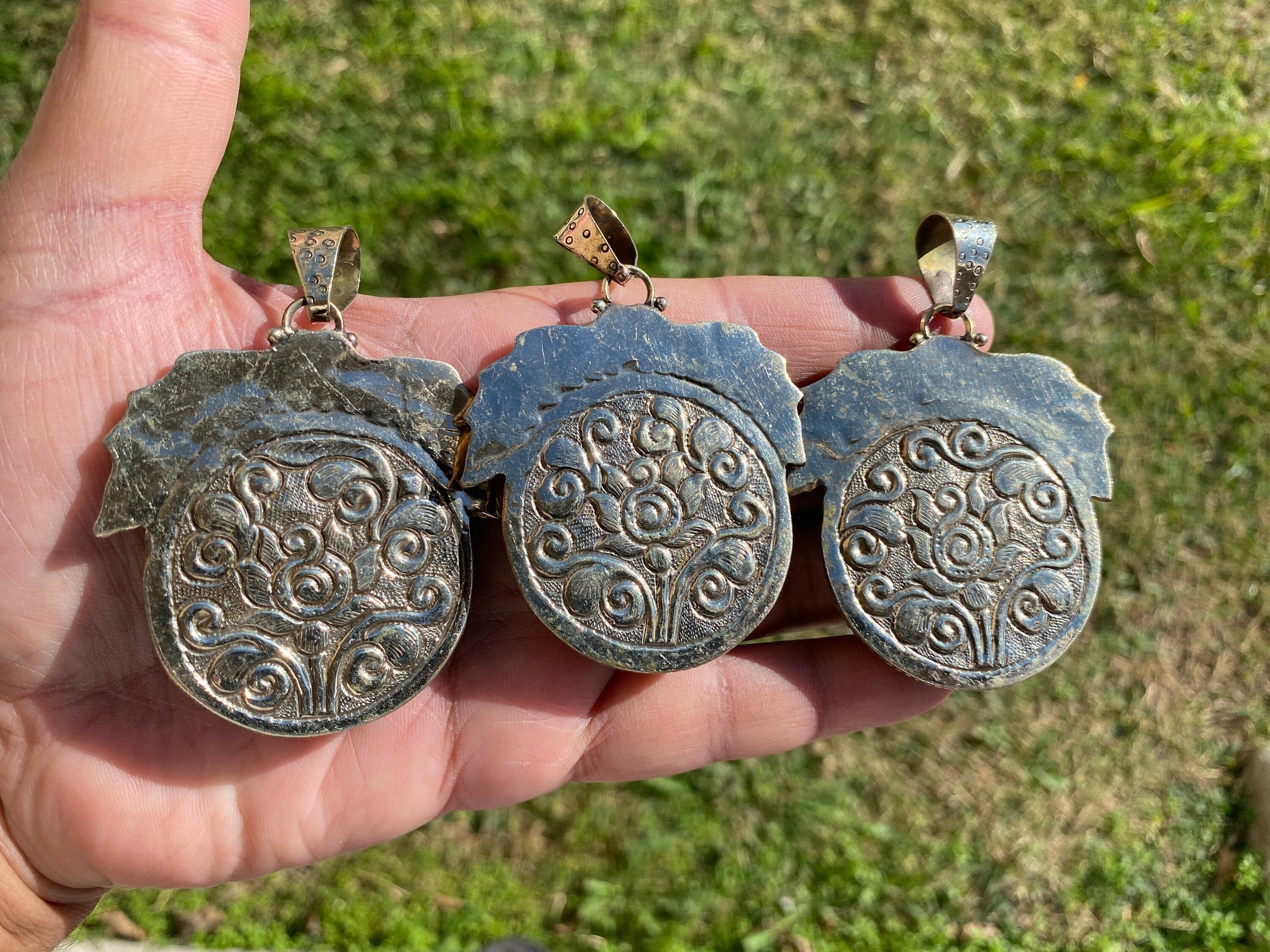 Measurement: approximately Length 55 mm (measuring from bail to bottom), width 43 mm from the widest side, bail size: 10 mm and weighs about 31.80 gm.