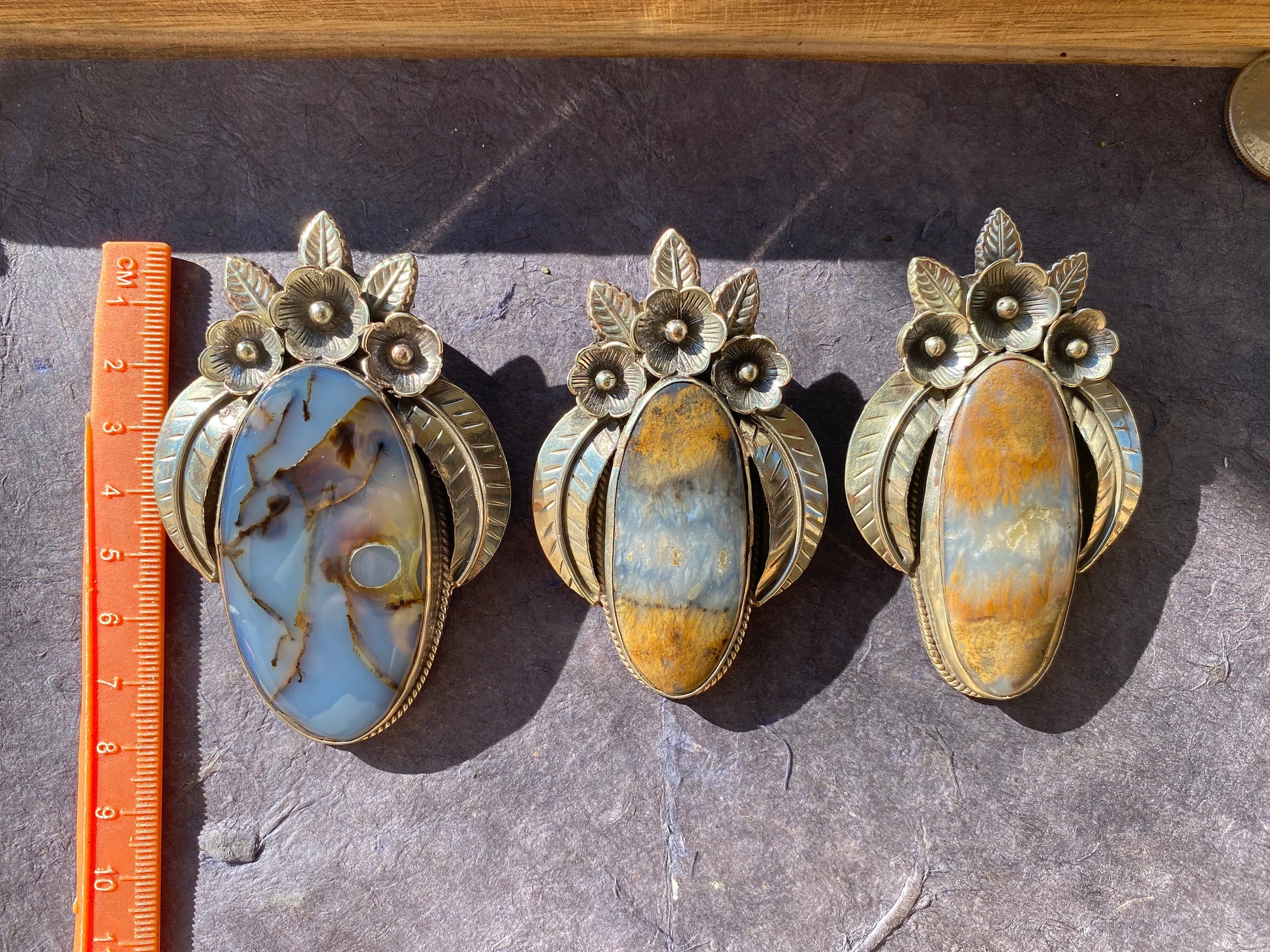 Measurement: Left Pendant: approximately Length 84 mm (measuring from bail to bottom), width 55 mm from the widest side, bail size: 12 mm and weighs about 42.90 gm.Center Pendant: approximately Length 75 mm (measuring from bail to bottom), width 45 mm from the widest side, bail size: 12 mm and weighs about 30.70 gm.Right Pendant: approximately Length 80 mm (measuring from bail to bottom), width 47 mm from the widest side, bail size: 12 mm and weighs about 34.50 gm.