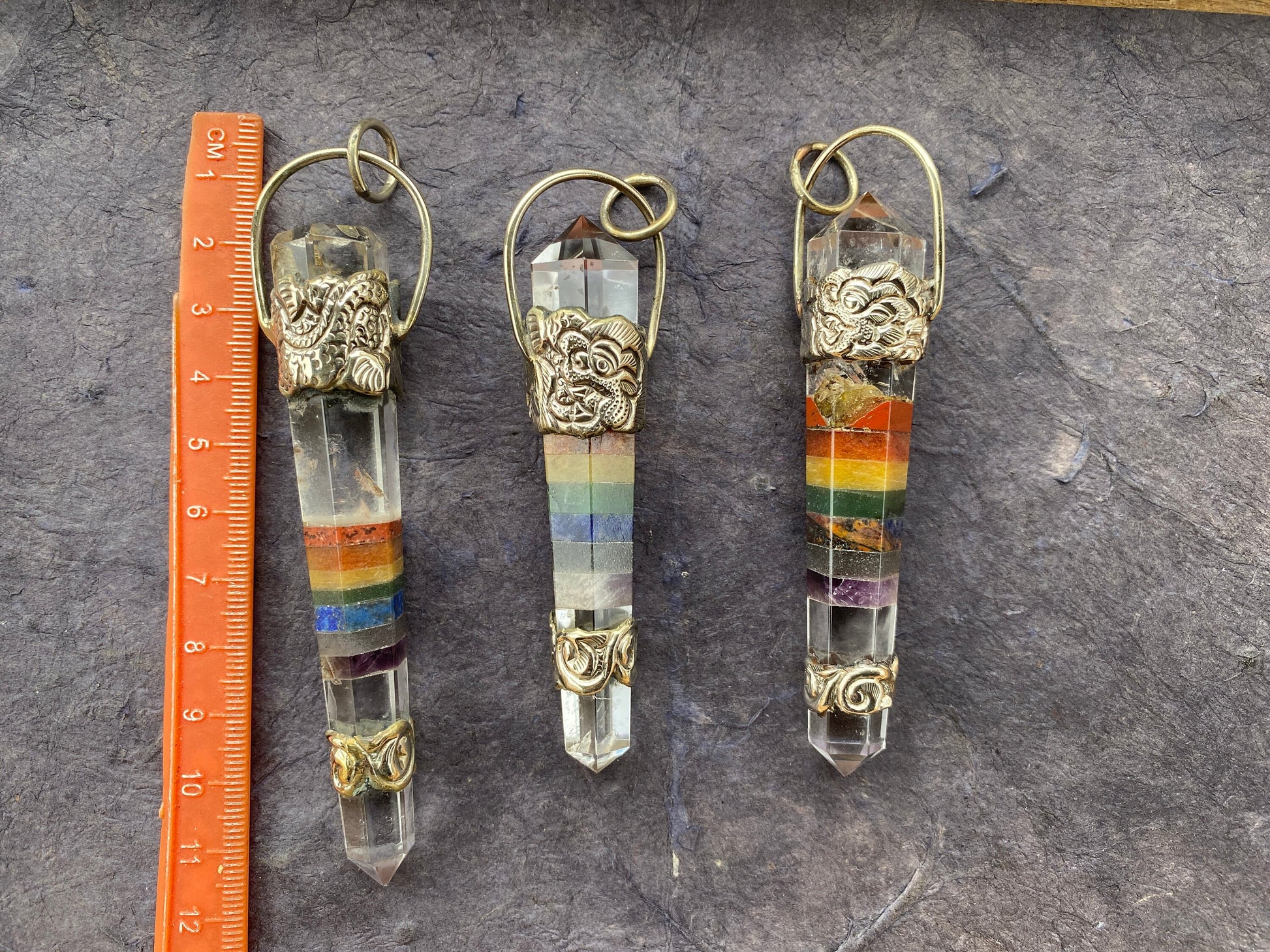 Large Seven Chakra Crystal Point Tibetan Silver Pendant, Multi gemstone Pendant for Necklace, Healing Crystal, Boho Pendant, Hippie Pendant,