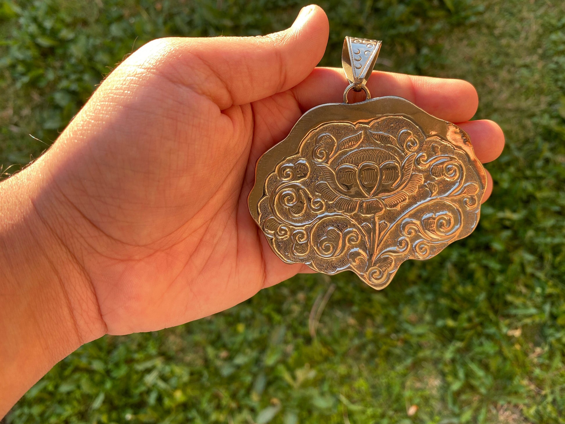 This Gorgeous hand carved buffalo bone Skull pendant made with Tibetan Silver ( Repousse Silver ) with a remarkable detail of carving. Hand-carved floral design on the back side of Pendant. This Tibetan designs pendant is handmade in Nepal and adorned by a beautiful pendant. Perfectly bohemian in style, these tribal beauties come from the Himalayas. Beauty of this pendant that is unmatched as they are handmade and are one of a kind. With the nature of them being handmade, each product is unique in its own right and no two products are the exact same.