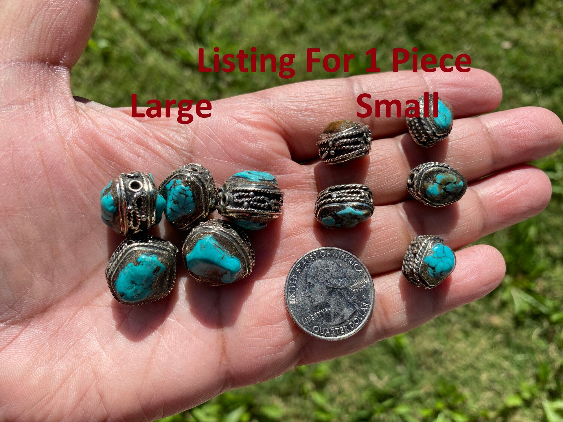 This listing is for 1 piece.At wholesale price!!! These Tibetan beads were handcrafted in Nepal. Hand-carved beads made with Tibetan Silver & Natural Turquoise. These Beads are sure to make an impact on your jewelry project. These beads would be a great addition to your...