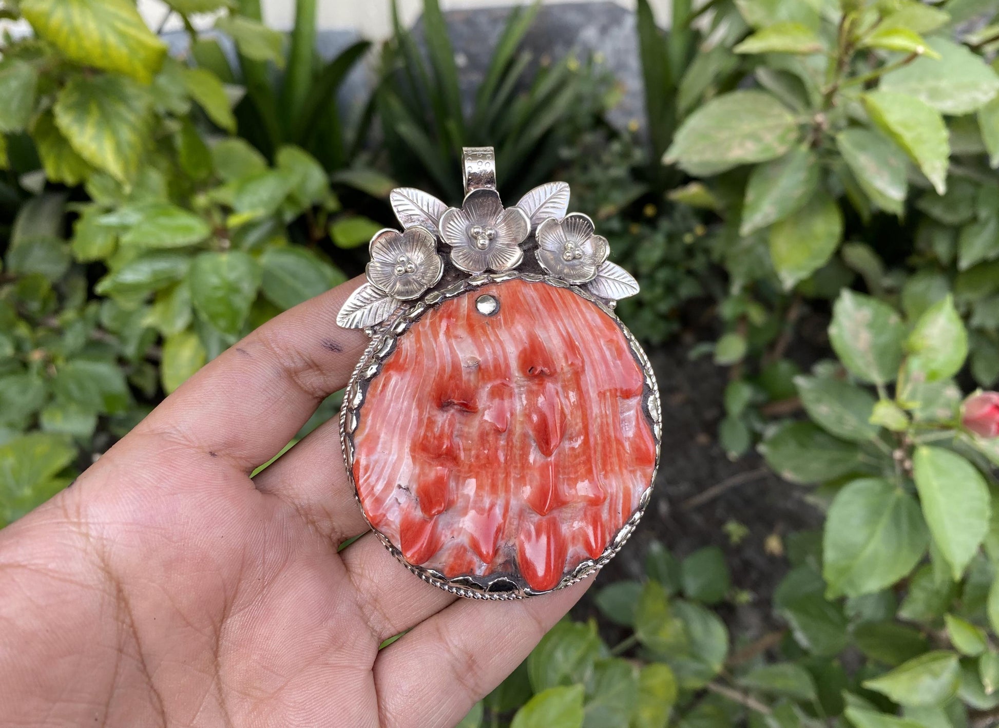 This vibrant pendant features a striking Spiny Orange Oyster Shell set in Tibetan silver, handcrafted in Nepal. Inspired by the desert sea, it showcases rich ocean colors with a rustic, Bohemian charm. A unique and thoughtful gift for nature lovers and fans of one-of-a-kind jewelry.