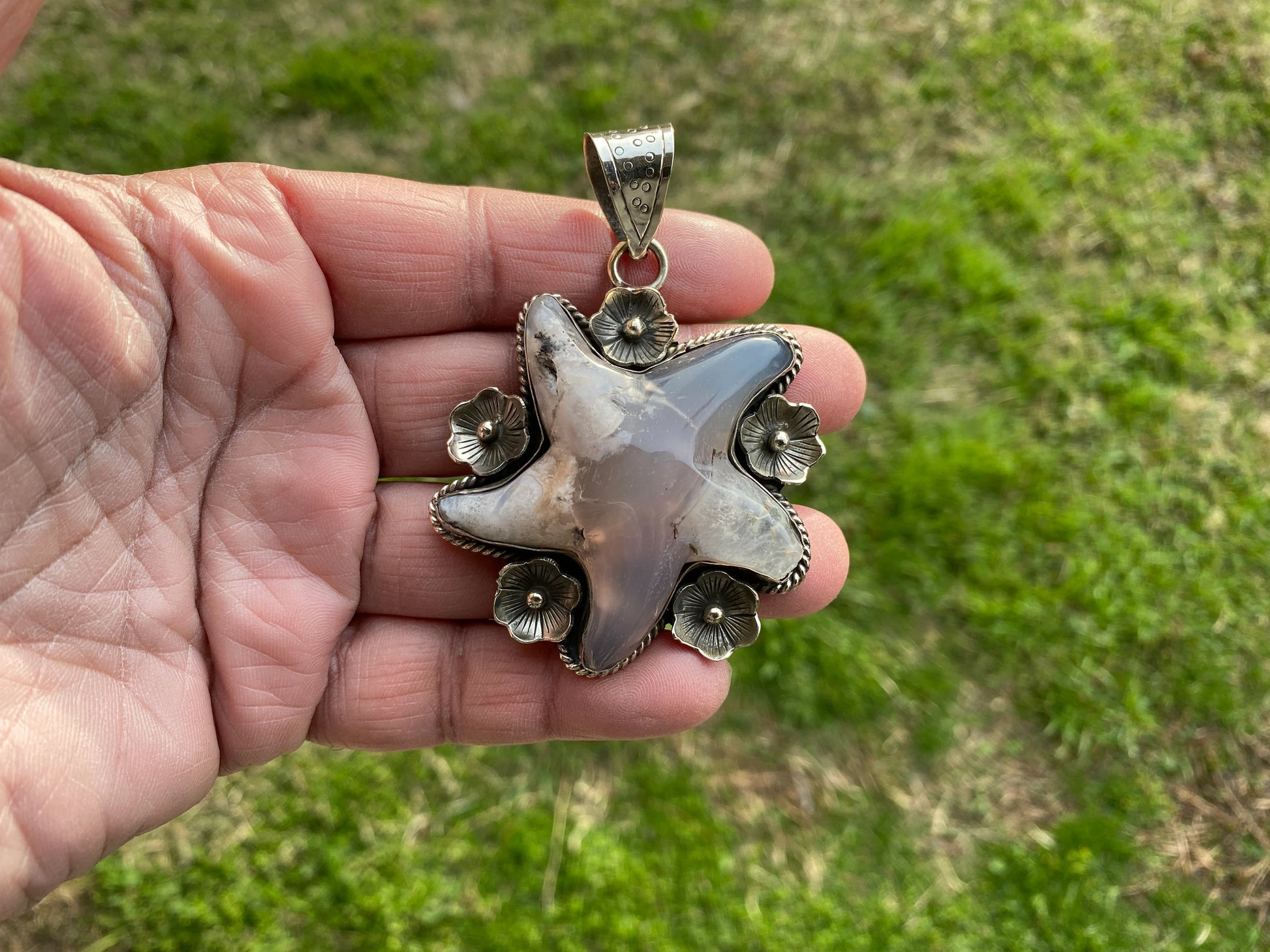 Large Starfish Lace Agate Natural Stone Tibetan Silver Pendant, Unique Christmas Gift, Focal Pendant, Cool Pendant, Healing Crystal Jewelry