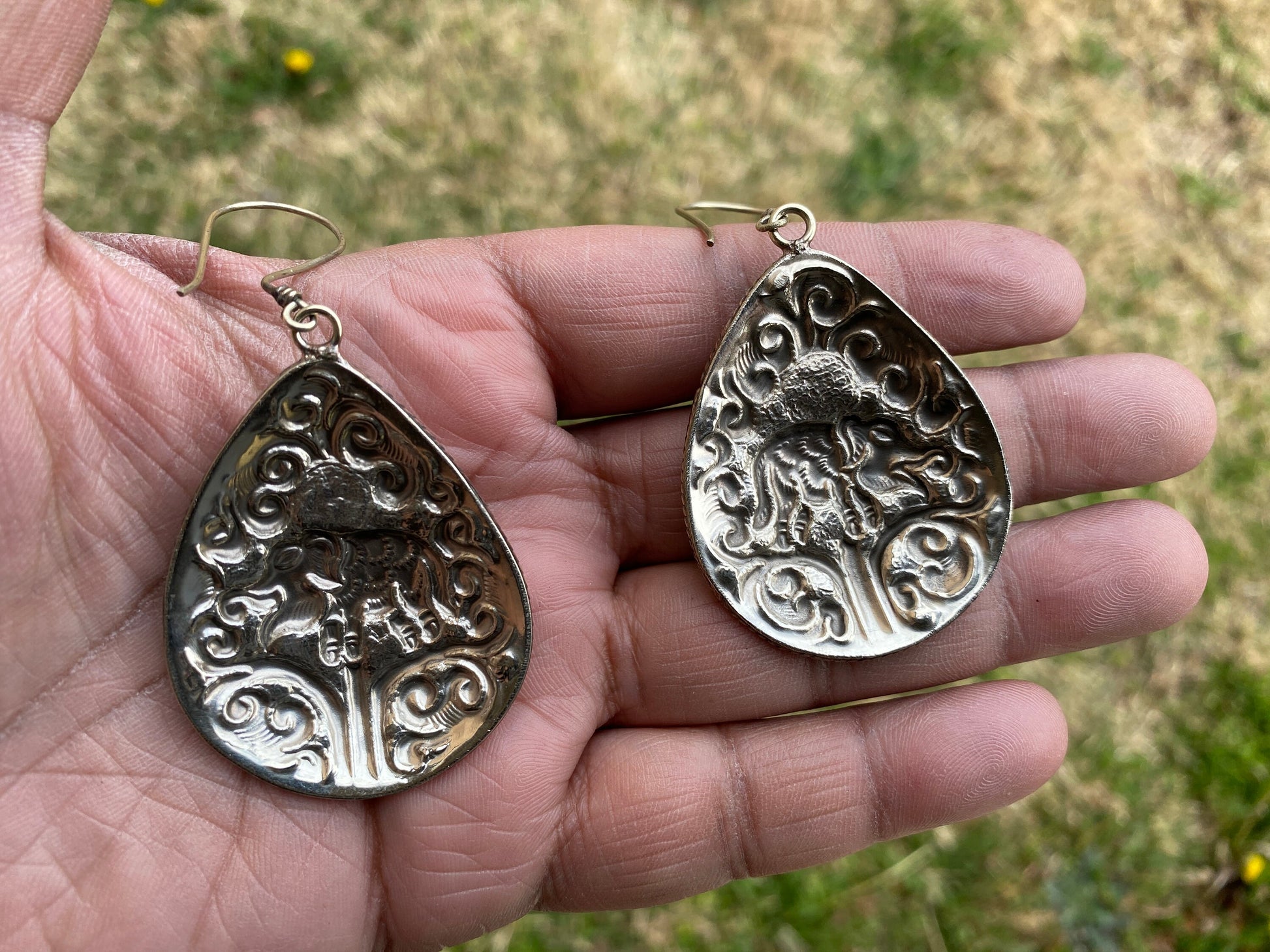 Measurement approximately 80 mm long including the hook, 36 mm wide (measuring the widest part of the dangle), and weight about 12.40 gm. ( Each Pair)