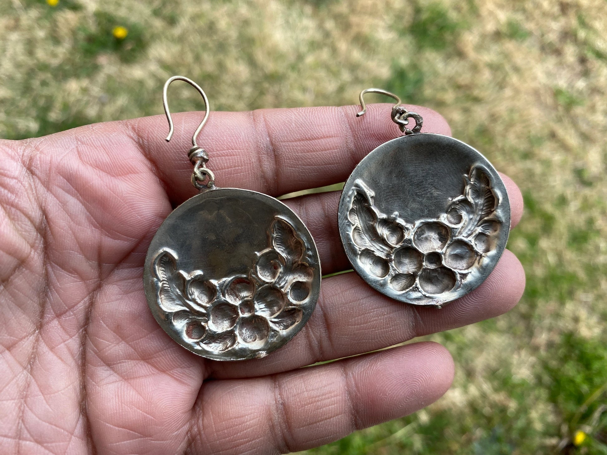 Large Tibetan Silver Flower Design Earrings, Red Coral Stone, Birthstone Earring, Birthday Gift, Bridesmaid Earring, Light Weight Earring