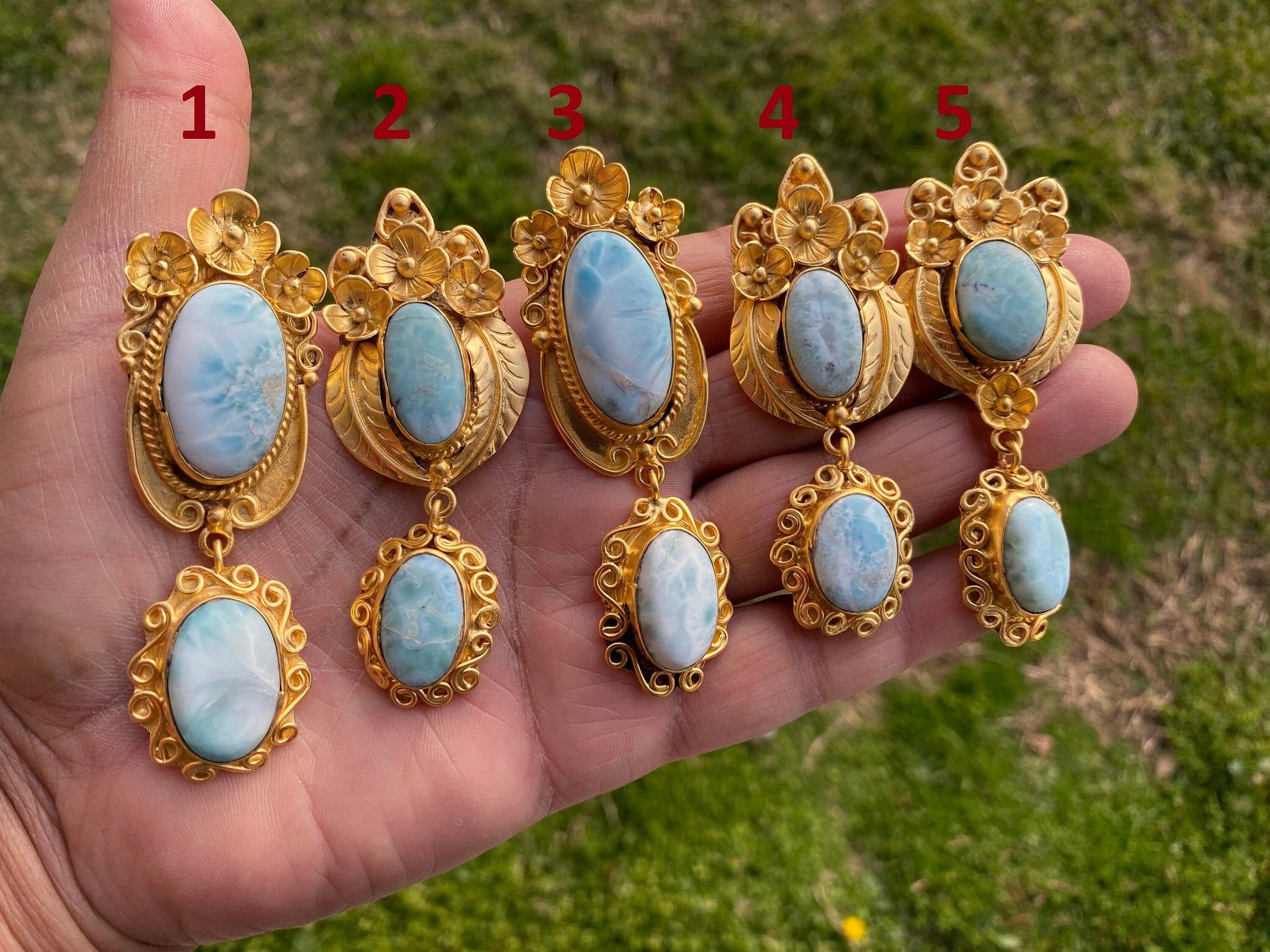 Larimar Natural Stone Gold Pendant, Non Tarnish Brushed Gold Overlay, Jewelry for Women, Ethnic Jewelry, Ocean Blue Stone, Throat Chakra