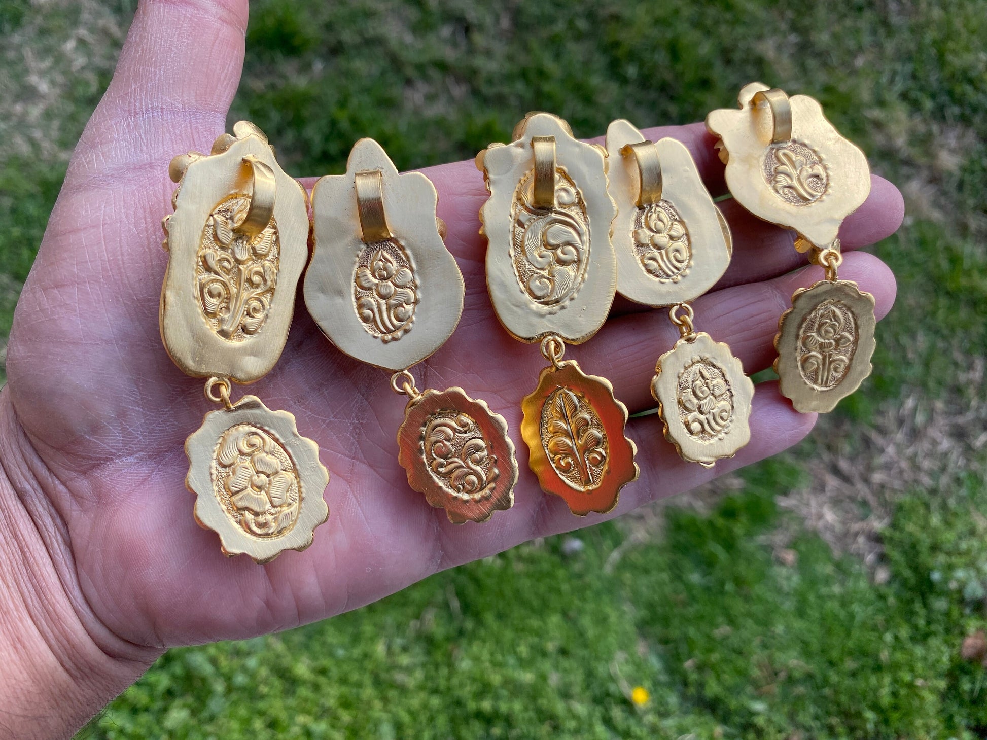 This one of a kind Tibetan Pendant made with Non Tarnish 18K Brushed Gold Overlay over Brass & Larimar Natural Stone. Beautiful hand carved design on the back of the pendant. These are sure to make an impact on your jewelry project. This pendant would be a great addition to your necklace, would look great strung on beaded Necklace, Chain or Mala. This Ethnic designs pendant is handmade in Nepal. Perfectly bohemian in style, these tribal beauties come from the Himalayas.Beauty and magic of this pendant that is unmatched as they are handmade and are one of a kind. With the nature of them being handmade, each product is unique in its own right and no two products are the exact same.