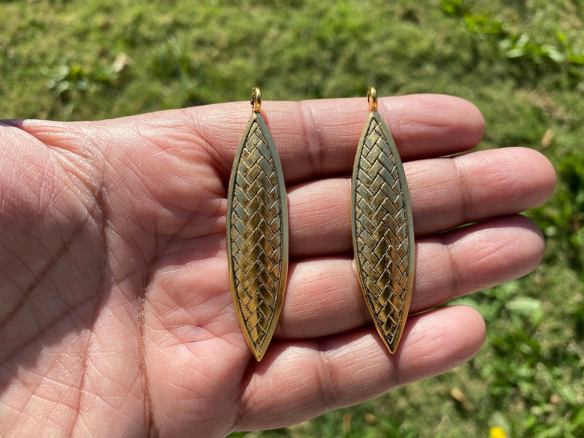 Long Leaves Charm for Earrings or Necklace Pendant, Non Tarnish Brushed Gold Overlay, Earring Components, Jewelry Making Findings, Leaf