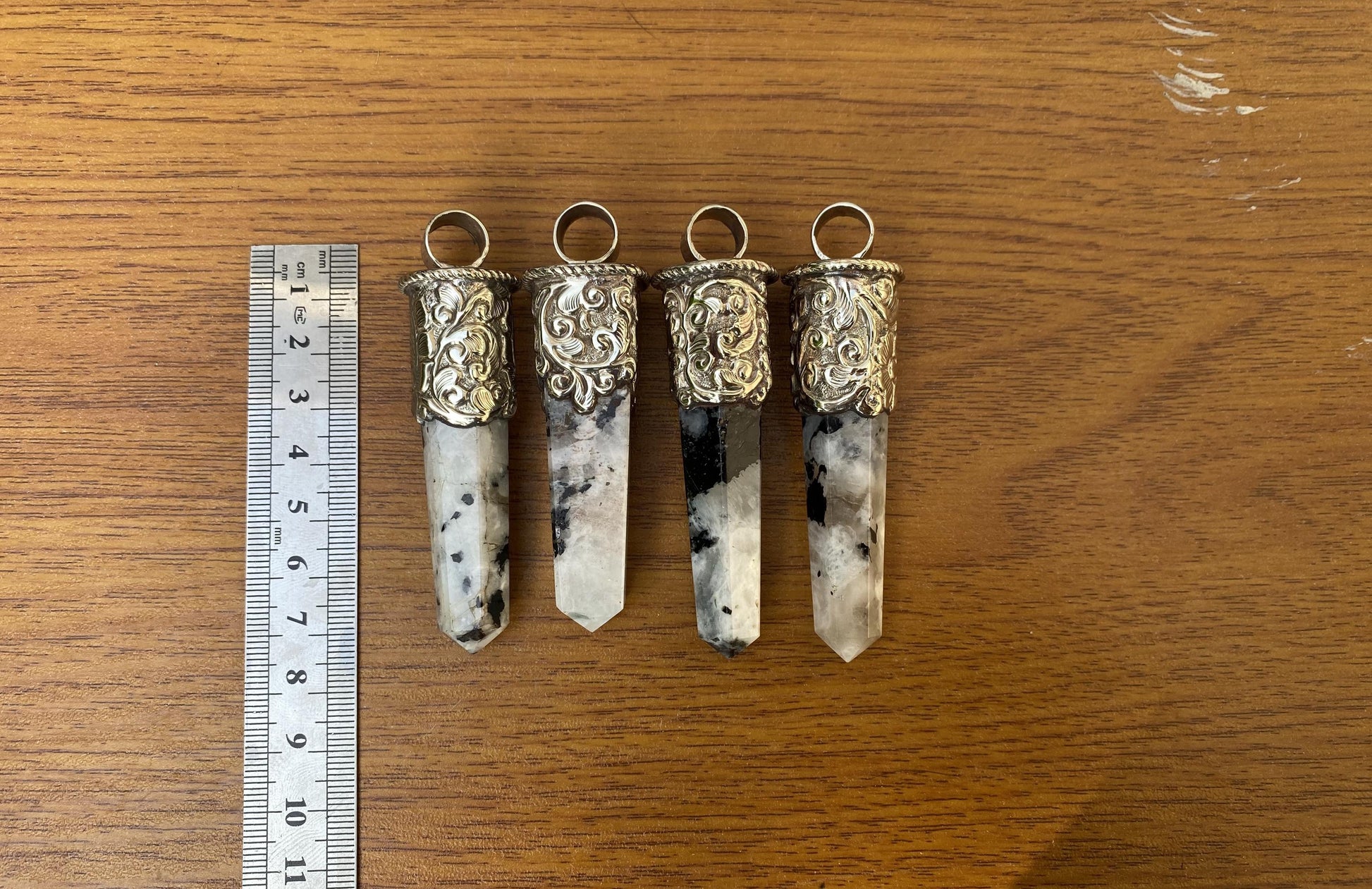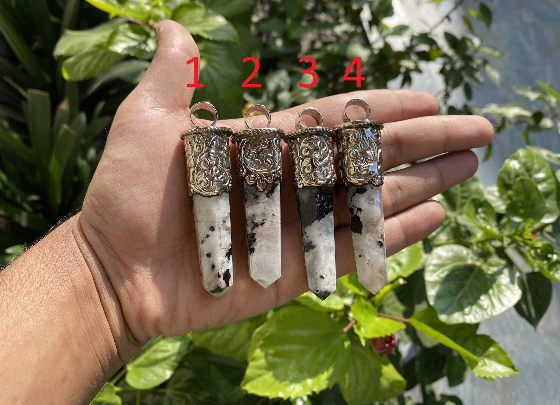 Long Pointed Natural Moonstone Gemstone Tibetan Silver Pendant | Light Weight Pendant for Necklace, Jewelry from Nepal, Energetic protection