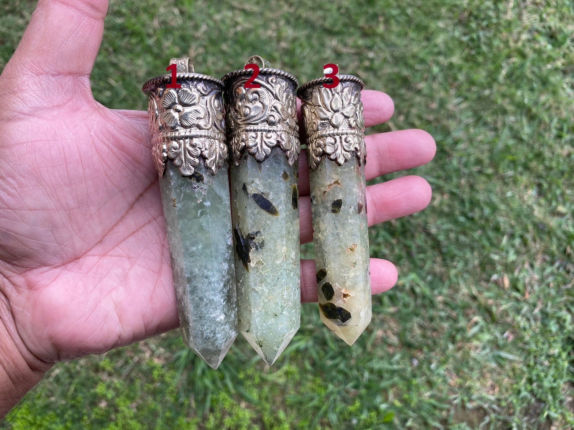 This listing is for 1 piece.At wholesale price!!!Glowing with a gentle, ethereal light, the Pointed Prehnite Stone Pendant stands as a symbol of both beauty and mysticism. Often dubbed the "Stone of Prophecy," Prehnite is believed to enhance intuition, foresight, and inner knowing. This pendant, with its naturally pointed shape, channels the pure essence of nature and the wisdom of the cosmos.Cradled in its setting, the verdant hue of the prehnite evokes images of tranquil forests and rejuvenating springtime foliage. Every facet and nuance of this stone seems to tell a story; a story of earth, water, and the intertwining roots of nature.Handcrafted with love and precision, the Pointed Prehnite Pendant serves not just as a piece of jewelry, but a personal talisman. For those in tune with the rhythms of the earth and the energies of the universe, wearing this pendant feels like a gentle embrace of nature. Perfect for both the spiritually inclined and lovers of unique, organic beauty, this pendant promises to be a cherished piece in any collection.