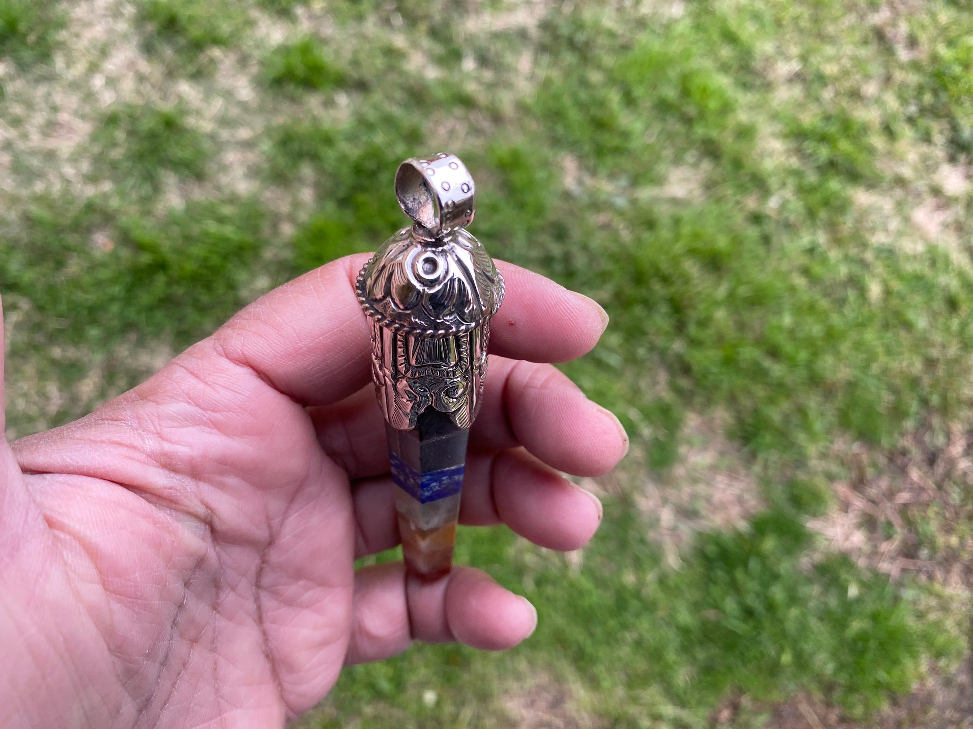 Large Pointed Natural 7 Chakra Tibetan Silver Pendant, Unique Designs.Handmade: 7 Chakra Stones, Namely - Clear Quartz, Amethyst, Lapis Lazuli, Green Aventurine, citrine, Red Agate, Red Stone Handpicked For Size And luster And beautifully Studded Over A Vibrant 7 Chakra Pendant.Look: The Magnificent Colors Of These Natural Stones Not Only Provide Healing Benefits Such As Positivity, Energy And Wisdom, They Also Arouse Curiosity Due To Its Unique Design.Large Bail