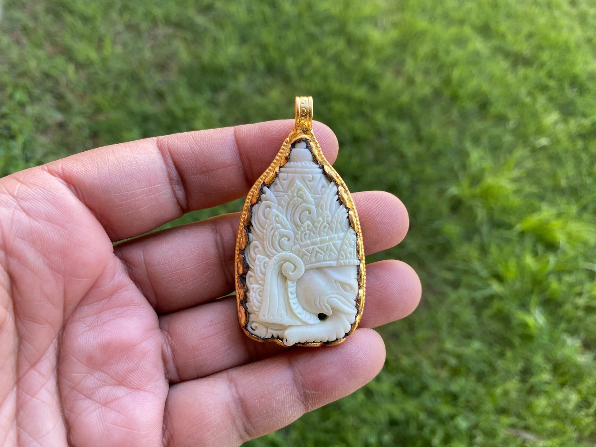 Lord Ganesh Hand Carved Buffalo Bone18K Brushed Gold Overlay Non Tarnish Pendant Pendant, Yoga Pendant, Ethnic Jewelry, Spiritual Pendant