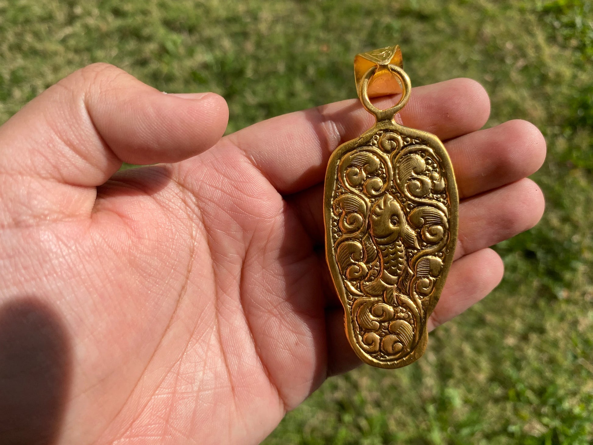 This Gorgeous 18K Matte Gold Overlay over Brass with anti tarnish finish. Hand Carved Ganesh Buffalo Bone pendant with a remarkable detail. Beautiful Hand-carved design on the back side of Pendant. This Tibetan designs pendant is handmade in Nepal and adorned by a beautiful pendant. Perfectly Yoga in style, these tribal beauties come from the Himalayas. Beauty of this pendant that is unmatched as they are handmade and are one of a kind. With the nature of them being handmade, each product is unique in its own right and no two products are the exact same.