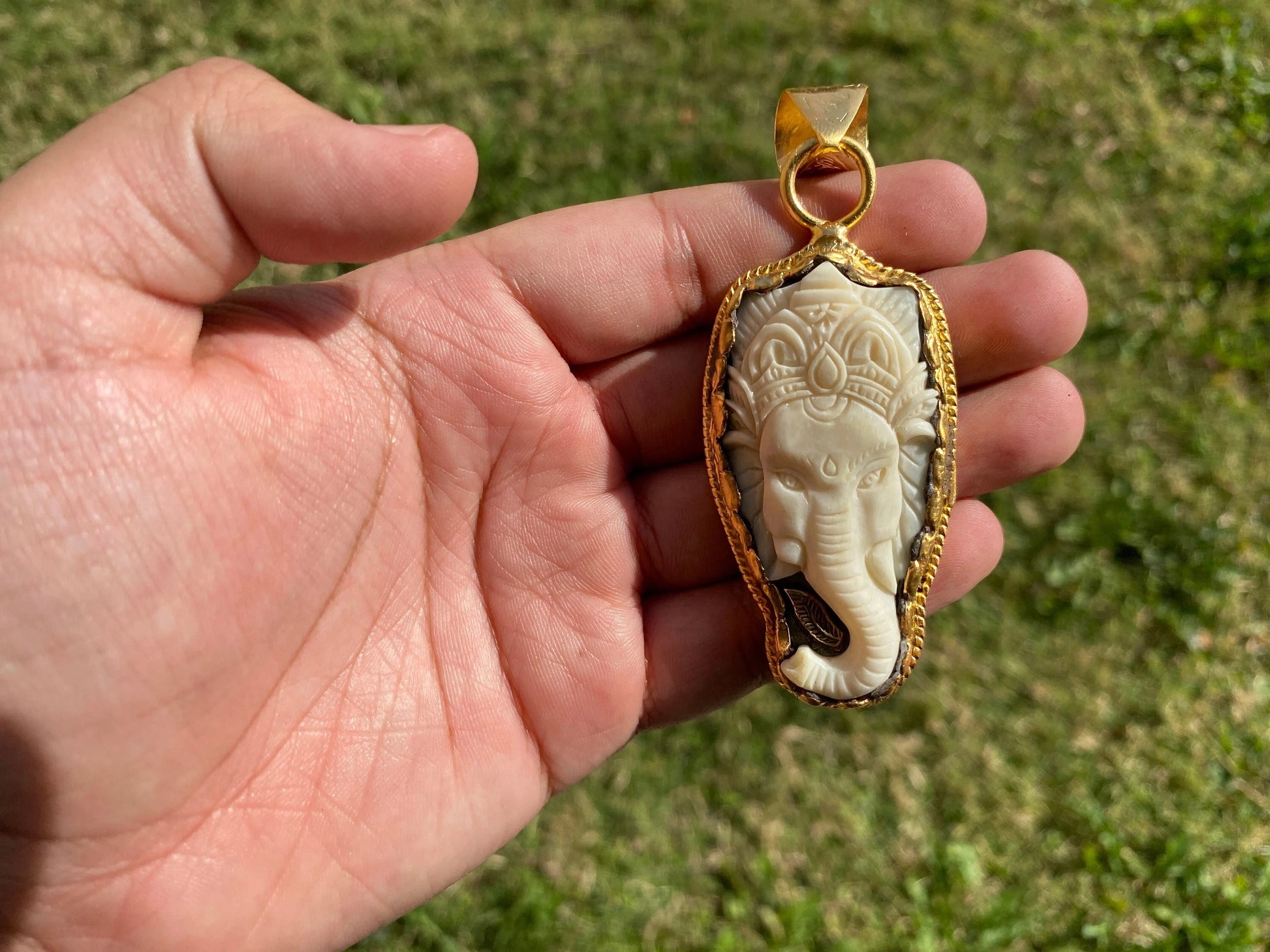 Lord Ganesh High Quality 18K Brushed Gold Overlay Non Tarnish Tibetan Pendant, Buffalo Bone, Yoga Pendant, Ethnic Jewelry, Spiritual Pendant