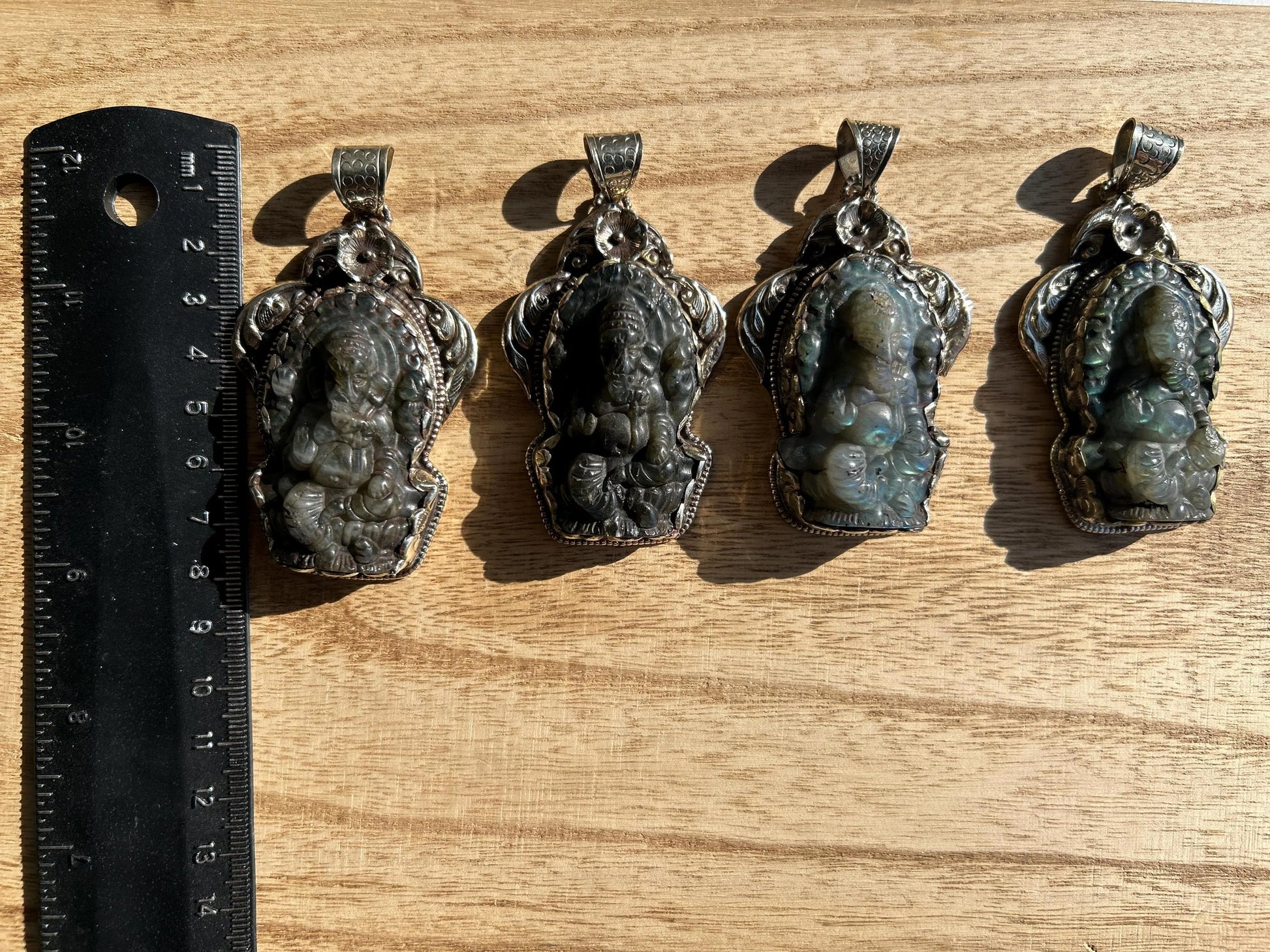 Beautiful handcrafted Lord Ganesha Tibetan Silver Pendant made with Natural Labradorite Gemstone. These pendants are sure to make an impact on your jewelry project. These Products would be a great addition to your necklace project and would looks great strung on beaded necklace, chain or Malas.