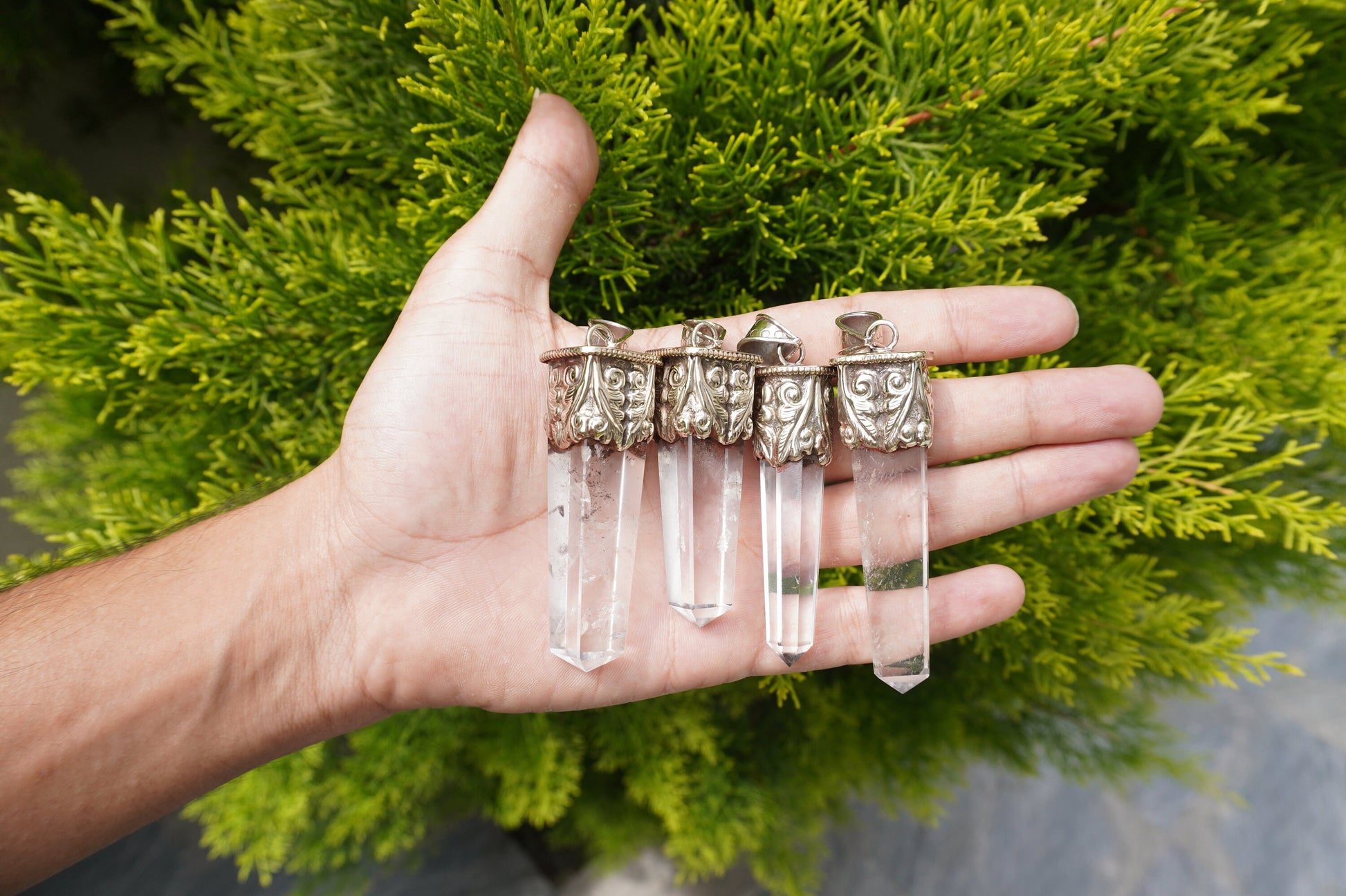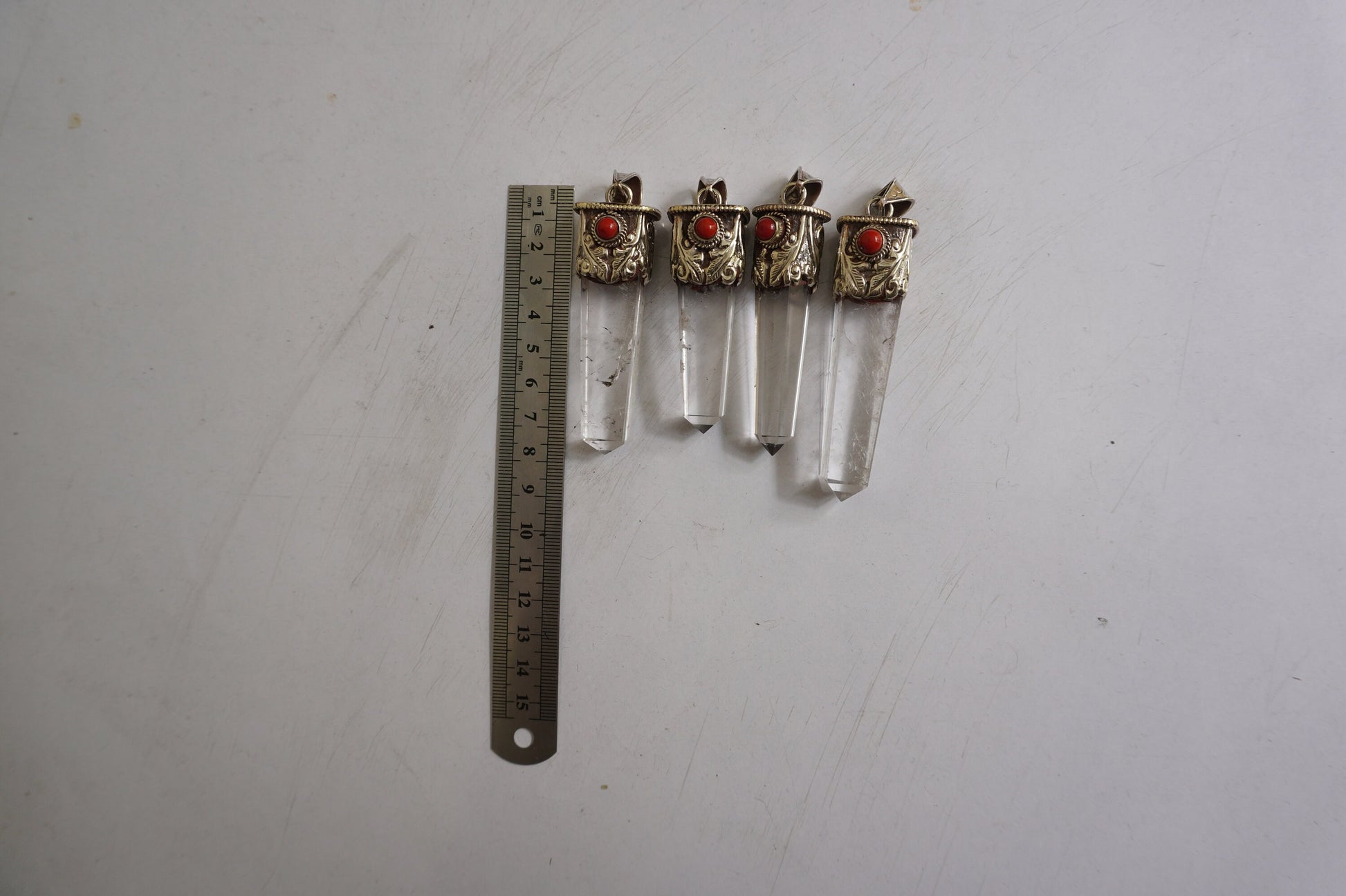 Natural Crystal with Red Coral Tibetan Silver Pendant | Nature Inspired Jewlery, Unisex pointed Pendant for Daily wear, Jewlery Gift