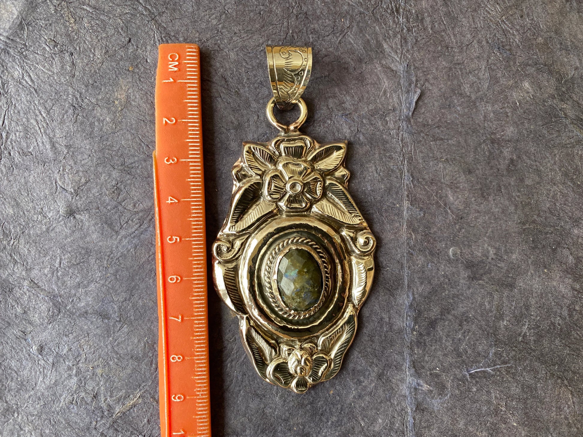 This one of a kind Butterfly Design. Tibetan Pendant made with Tibetan Silver & Natural Labradorite Natural Stone. Beautiful hand carved designs on the back of the pendant. These are sure to make an impact on your jewelry project. This pendant would be a great addition to your necklace, would look great strung on beaded Necklace, Chain or Mala. This Ethnic designs pendant is handmade in Nepal. Perfectly bohemian in style, these tribal beauties come from the Himalayas.Beauty and magic of this pendant that is unmatched as they are handmade and are one of a kind. With the nature of them being handmade, each product is unique in its own right and no two products are the exact same.