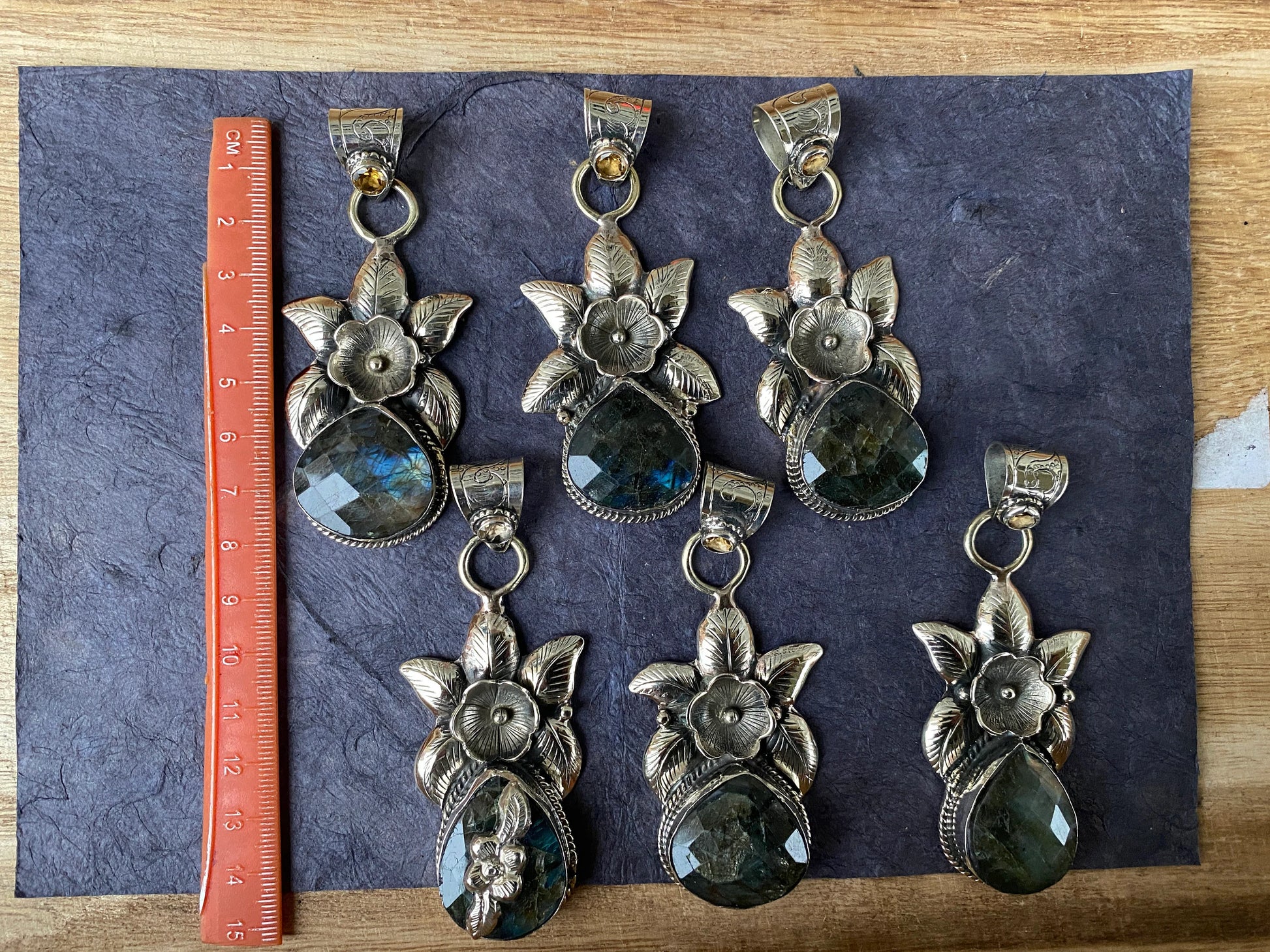 This listing is for 1 piece.At wholesale price!!! This Gorgeous pendant is hand-carved with a remarkable detail. This Tibetan designs pendant is handmade in Nepal and adorned by a beautiful pendant. Perfectly bohemian in style, these tribal beauties come from the Himalayas. Labradorite Pendant Made...