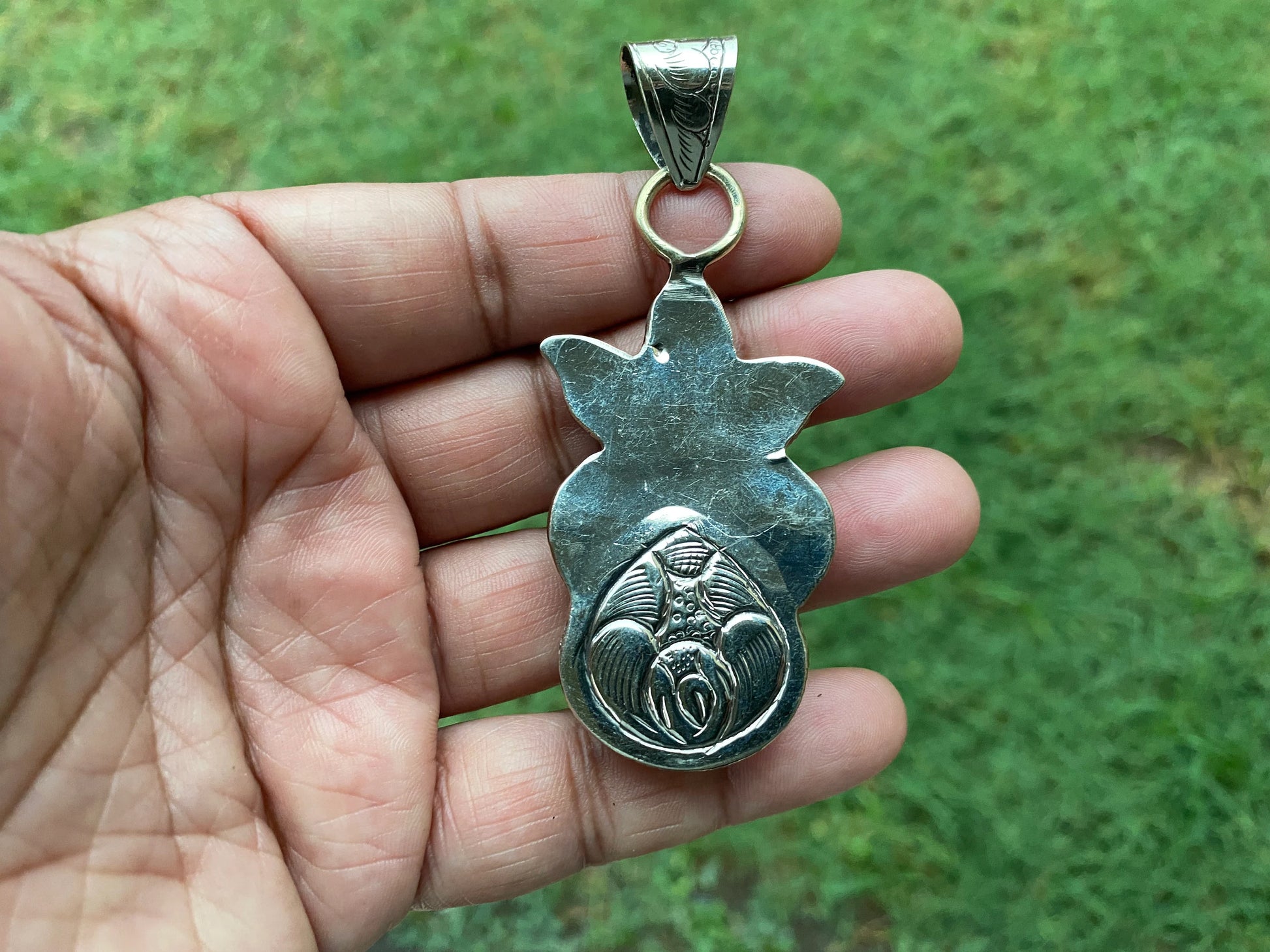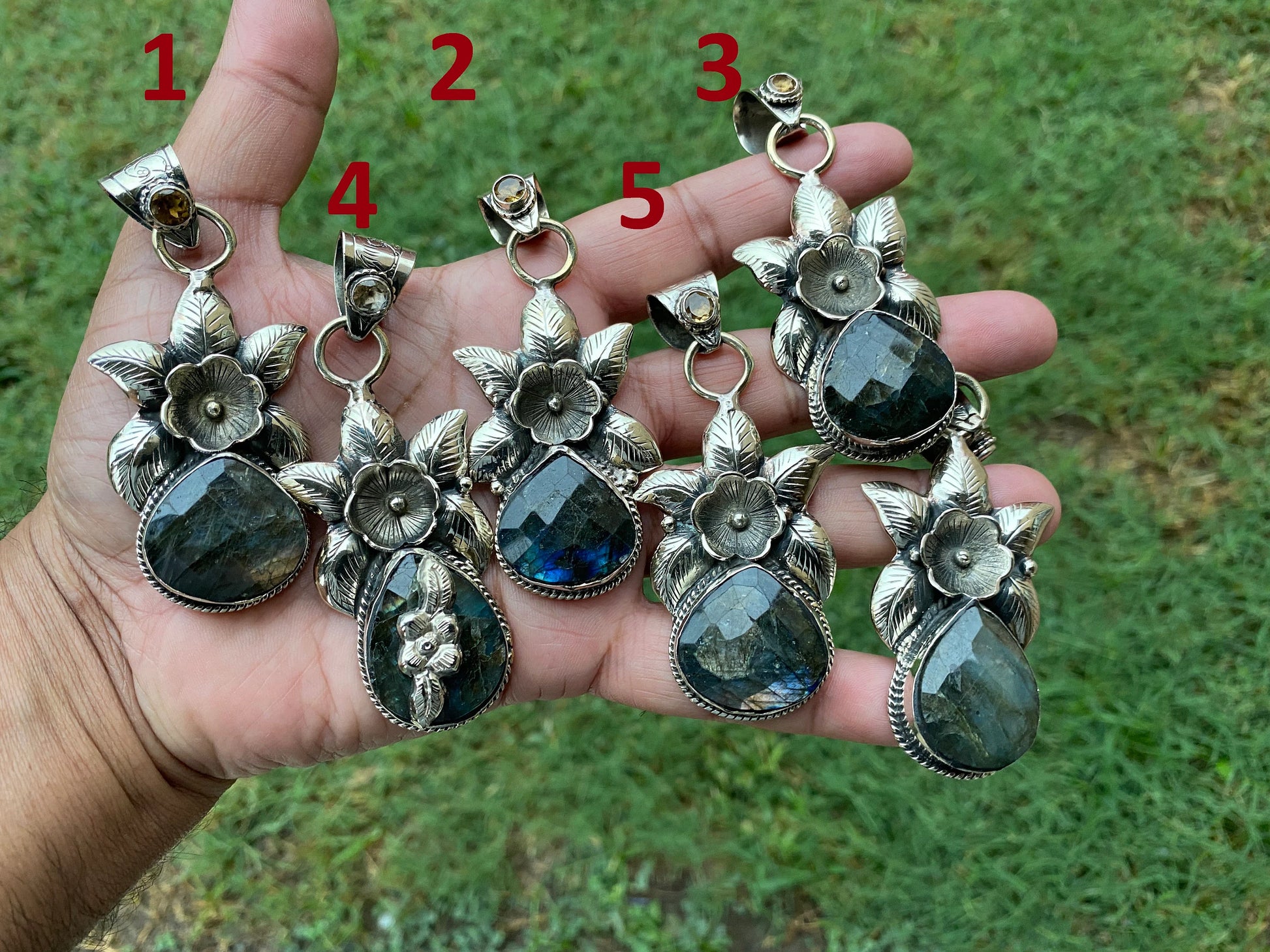This Gorgeous pendant is hand-carved with a remarkable detail. This Tibetan designs pendant is handmade in Nepal and adorned by a beautiful pendant. Perfectly bohemian in style, these tribal beauties come from the Himalayas. Labradorite Pendant Made with Tibetan Silver with faceted Citrine Gemstone. Bird designs Hand Carved on the back side of Pendant. These are sure to make an impact on your jewelry project. This would be a great addition to your necklace.