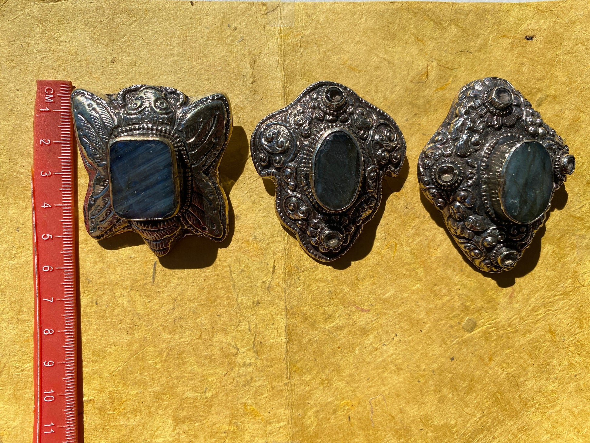 Measurement: Left Pendant: approximately Length 55 mm (measuring from bail to bottom), width 50 mm from the widest side, bail size: 8 mm and weighs about 43.30 gm.Center Pendant: approximately Length 58 mm (measuring from bail to bottom), width 50 mm from the widest side, bail size: 8 mm and weighs about 33.00 gm.Right Pendant: approximately Length 65 mm (measuring from bail to bottom), width 52 mm from the widest side, bail size: 8 mm and weighs about 47.70 gm.