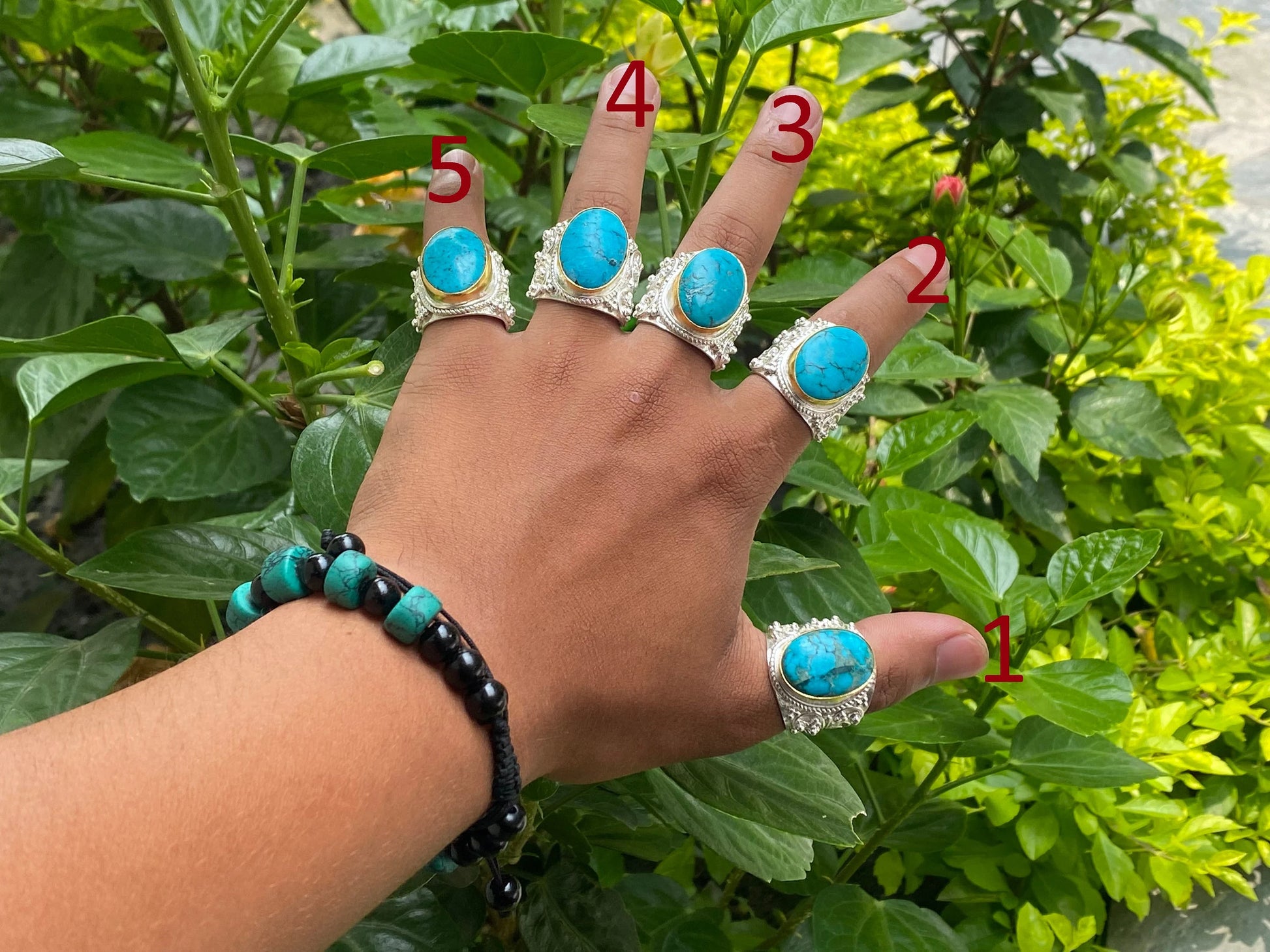 Ring Size: Adjustable (One size fits most) can size up or downStone: Natural Turquoise Measurement: Ring: Approximately 40.00 mm X 25.00 mm ( From widest Side) , Weight: 15.00 gm,