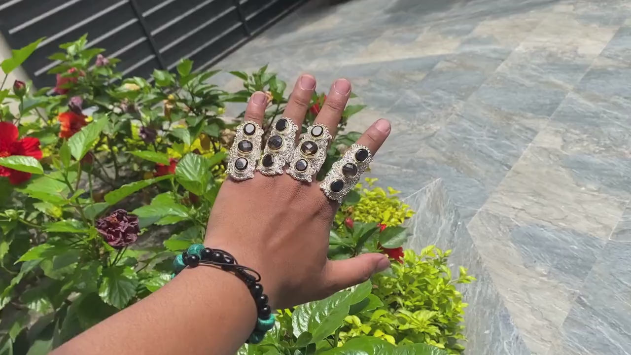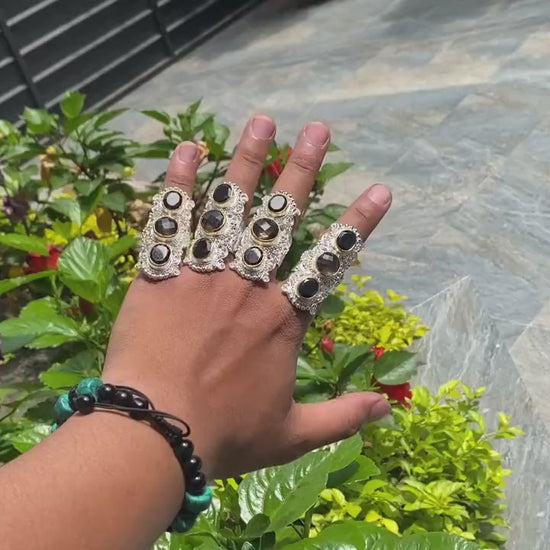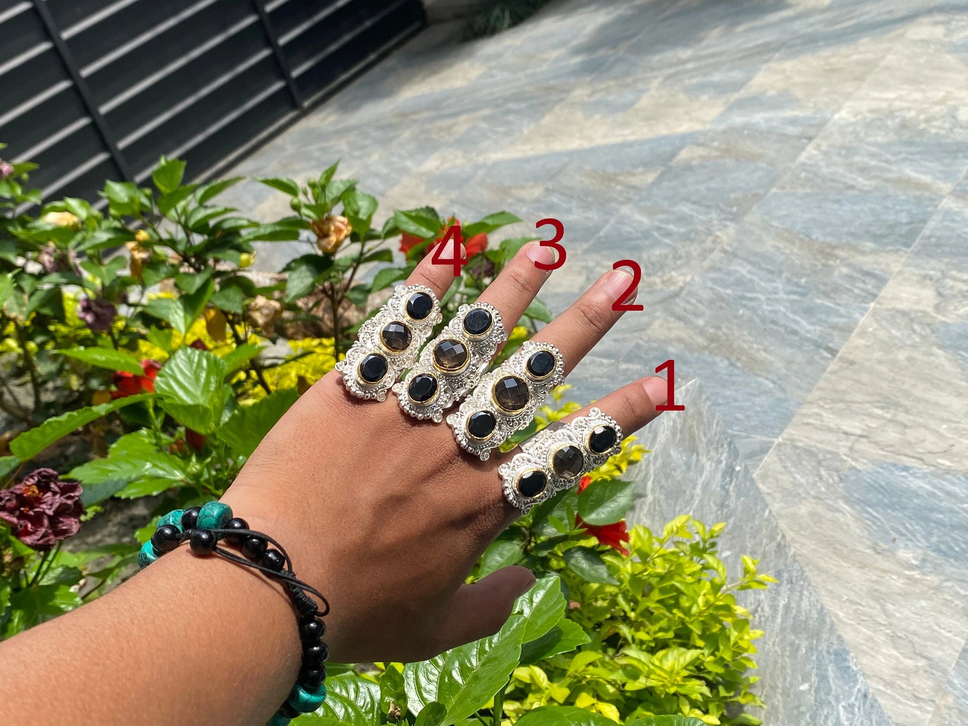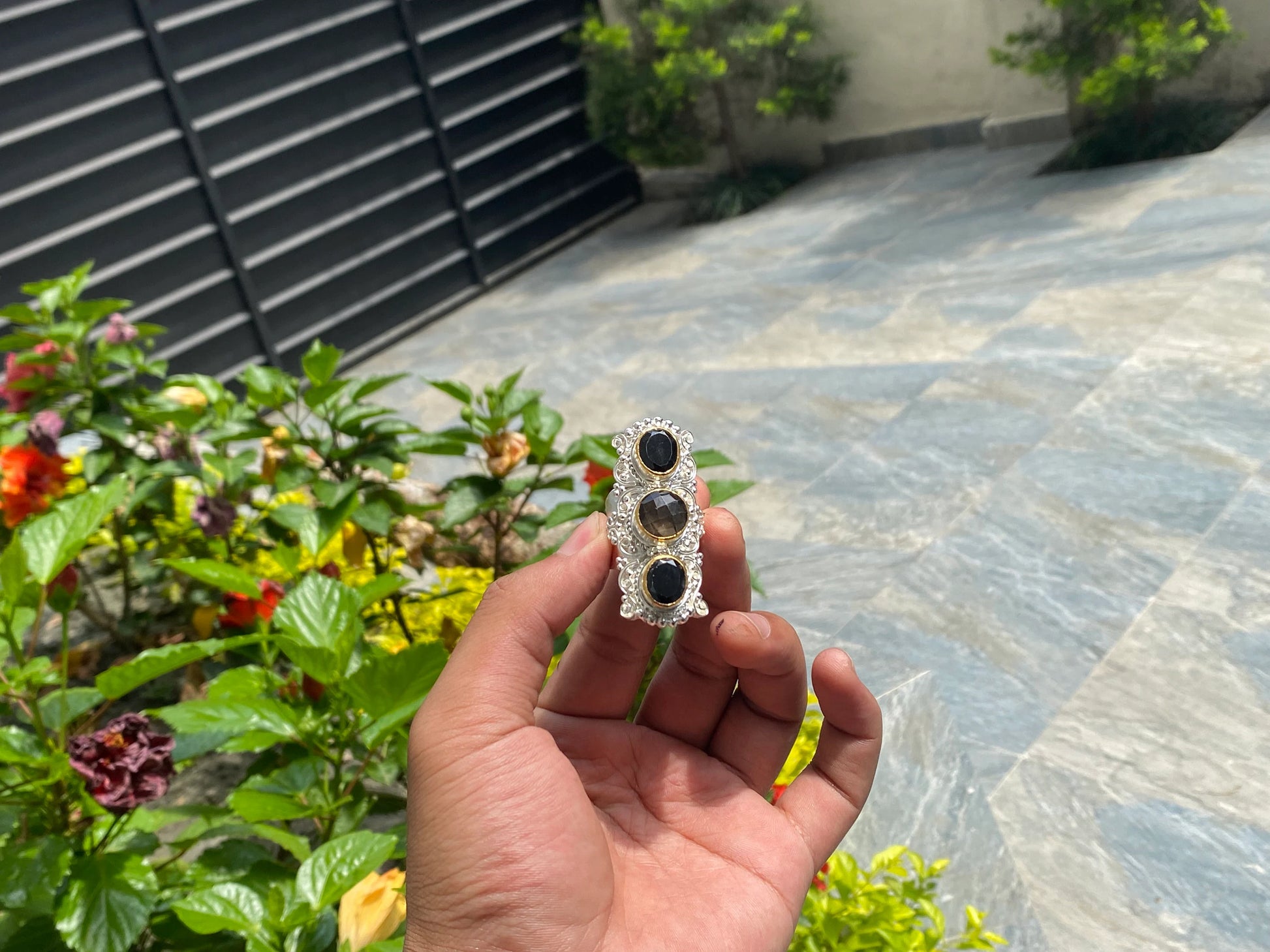 Ring Size: Adjustable (One size fits most) can size up or downStone: Natural Smokey Quartz, Natural Black Onex.Measurement: Ring: Approximately 52.00 mm X 19.00 mm ( From widest Side) , Weight: 27.00 gm,