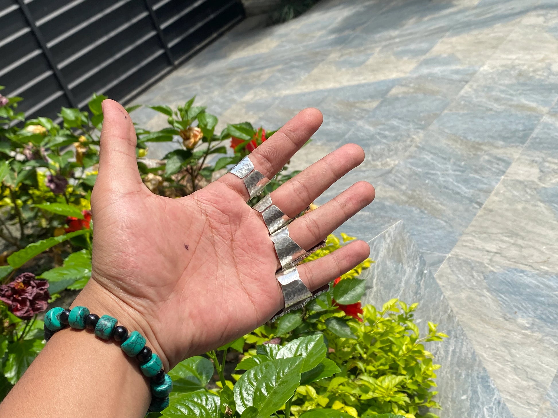 Discover artisanal elegance with our Big Natural Citrine and Amethyst Stone Adorned Ring. Handcrafted in Nepal, this adjustable two-tone marvel features hammered detailing, adding texture and depth. Embrace its unique aesthetic as it captures the essence of handmade charm. Elevate your style with this exquisite piece that seamlessly blends natural beauty, artisanal craftsmanship, and timeless elegance into one captivating ring.