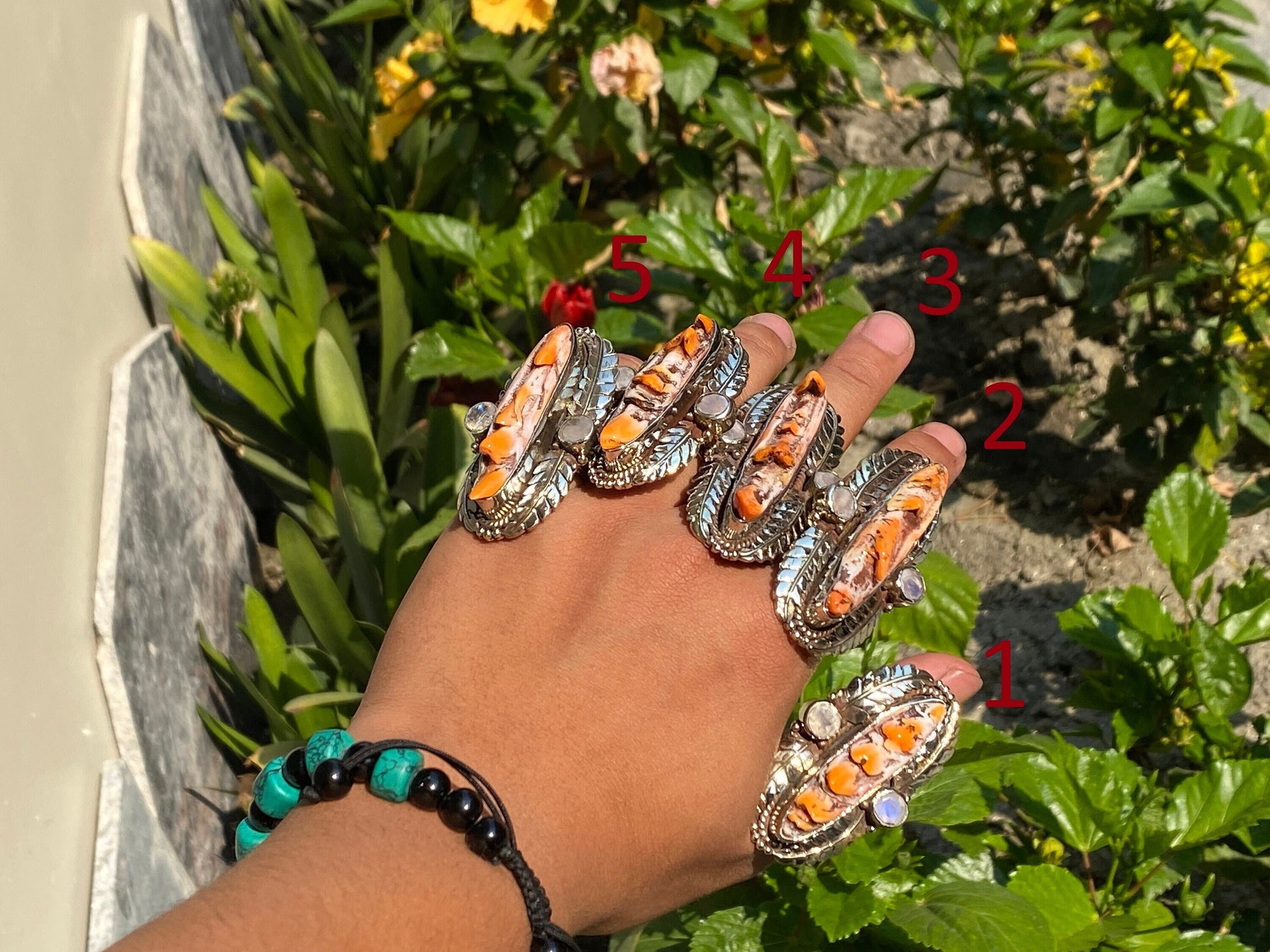 This listing is for 1 piece.Ring Size: Adjustable (One size fits most) can size up or downStone: Natural Orange Spiny OysterMeasurement: Approximately 60 mm X 34 mm ( From widest Side) , Weight: 35.00 gm