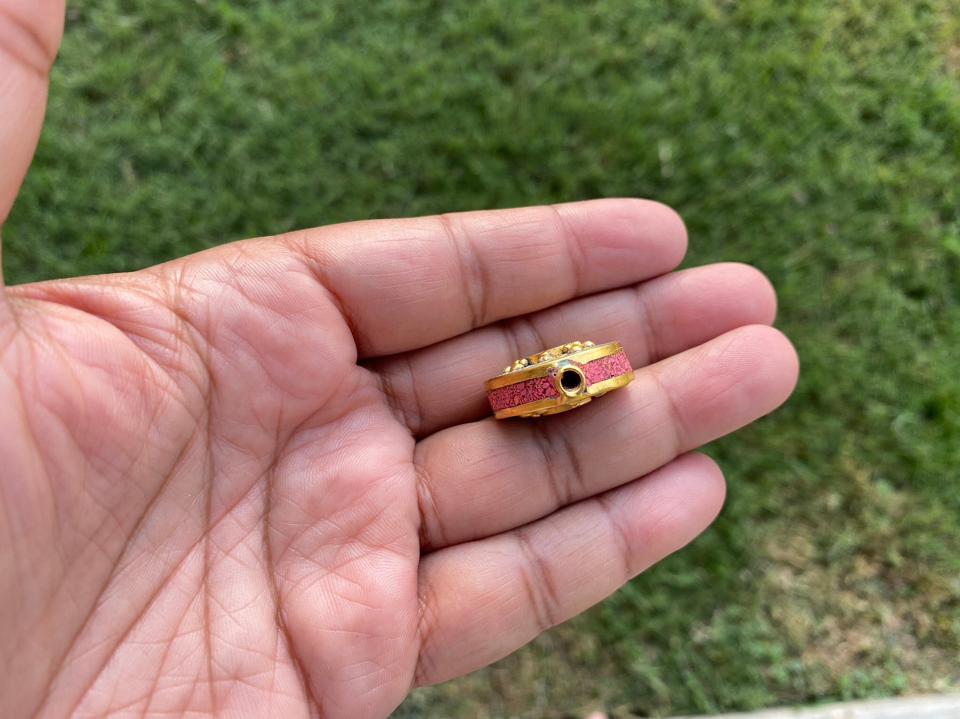 Nepal Beads, High Quality 18k Brushed Gold Overlay with Anti Tarnish,Turquoise with Coral Inlay Necklace Bead,Himalayan Handmade Ethnic Bead