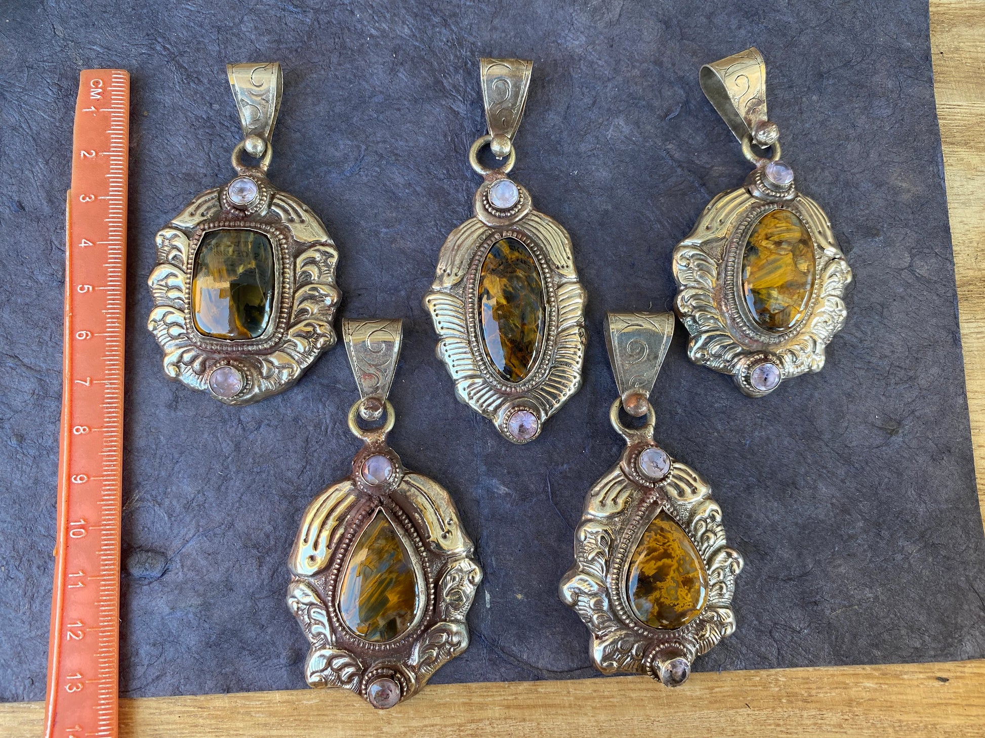 Pietersite Natural Stone Tibetan Silver Pendant, Pietersite Pendant For Necklaces, Big Size Gemstone Pendant, Handmade Gemstone Jewelry Gift