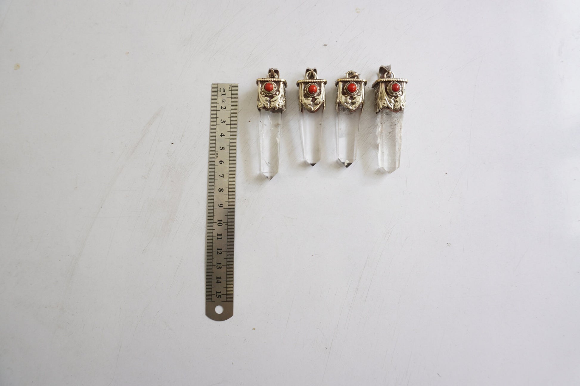 Pointed Crystal with Red Coral Tibetan Silver Pendant | Daily Wear Pendant, Wand Healing Crystal, Unisex Pendant, Nature Inspired Jewelry