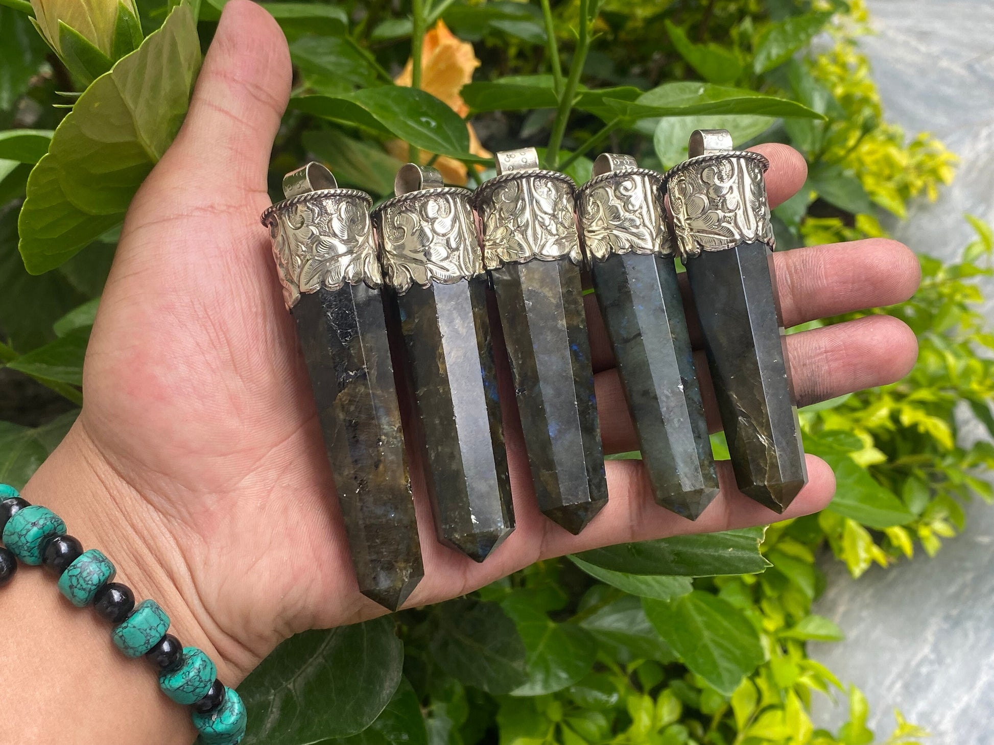 The Pointed Labradorite Pendant is a striking handmade piece from Nepal, featuring a bold pointed design and hammered finish. Perfect for daily wear, this unisex pendant radiates mystical charm and makes an ideal gift for her. Its enchanting labradorite stone adds a touch of natural elegance, making it a versatile and captivating accessory for any occasion.