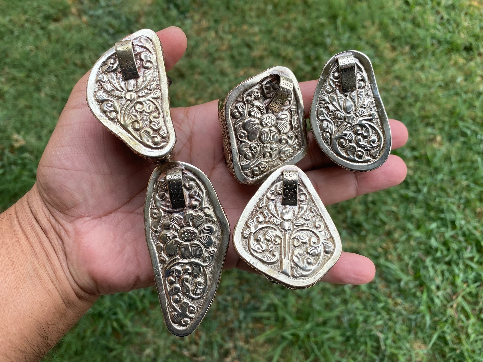 Measurement:Pic.#1: Pendant: approximately Length 53 mm (measuring from bail to bottom), width 32 mm from the widest side, bail size: 9 mm and weight about 77.50 gm.Pic. #2: Pendant: approximately Length 56 mm (measuring from bail to bottom), width 40 mm from the widest side, bail size: 9 mm and weight about 71.80 gm.Pic. #3: Pendant: approximately Length 53 mm (measuring from bail to bottom), width 32 mm from the widest side, bail size: 9 mm and weight about 68.90 gm.Pic. #4: Pendant: approximately Length 72 mm (measuring from bail to bottom), width 35 mm from the widest side, bail size: 9 mm and weight about 80.20 gm.Pic. #5: Pendant: approximately Length 53 mm (measuring from bail to bottom), width 45 mm from the widest side, bail size: 9 mm and weight about 76.30 gm.Disclaimer: Items are handmade so please note: Each item is unique may have some small imperfections. There can be a slight difference in actual color than shown in picture.Images may appear enlarged or smaller. Please refer to the measurements given.