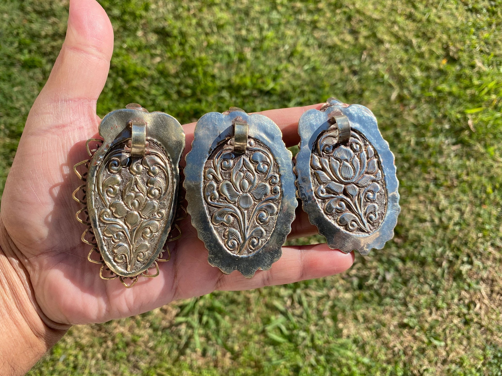 Measurement: # 1 - Pendant: approximately Length 75 mm (measuring from bail to bottom), width 43 mm from the widest side, bail size: 8 mm and weight about 39.80 gm.# 2 - Pendant: approximately Length 75 mm (measuring from bail to bottom), width 53 mm from the widest side, bail size: 8 mm and weight about 42.80 gm.# 3 - Pendant: approximately Length 80 mm (measuring from bail to bottom), width 45 mm from the widest side, bail size: 8 mm and weight about 33.10 gm.